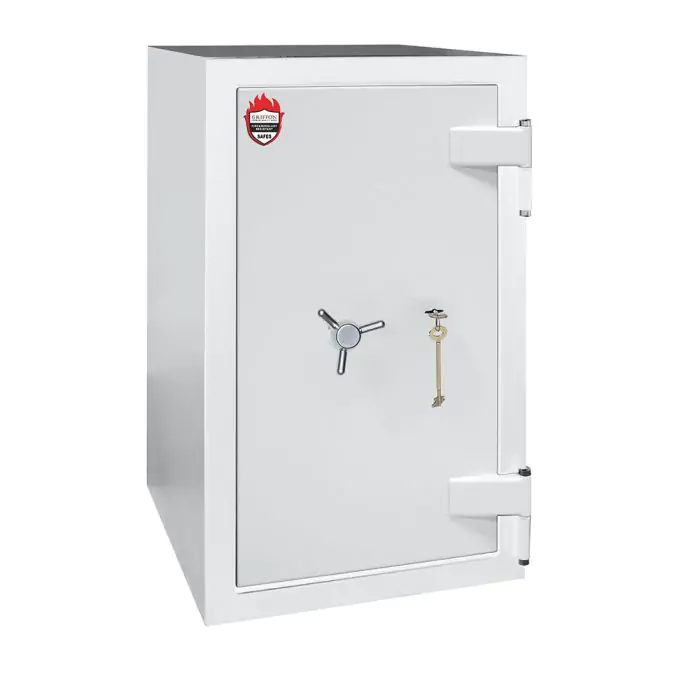 Griffon F.60.CL.I.84.K.T White це сертифікований сейф клас I за EN 1143-1 та вогнестійкість LFS 60P за EN 15659, призначений для захисту від пожежі грошей, документів і коштовностей у домі чи офісі. Захист забезпечують конструкція корпусу 72 мм (сталь - вогнестійкий бетон - сталь), дверей 140 мм (сталь - вогнестійкий бетон - сталь), ригельна система тристороння, 7 ригелів Ø 25 мм та замок ключовий STUV (Німеччина) VdS Class 1 (A).