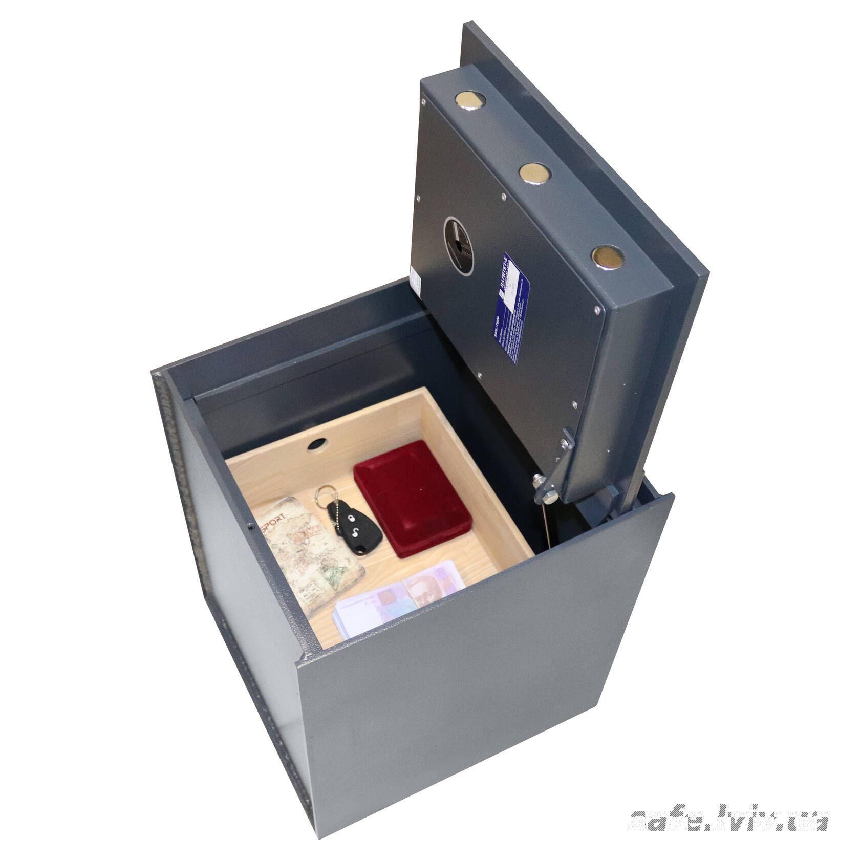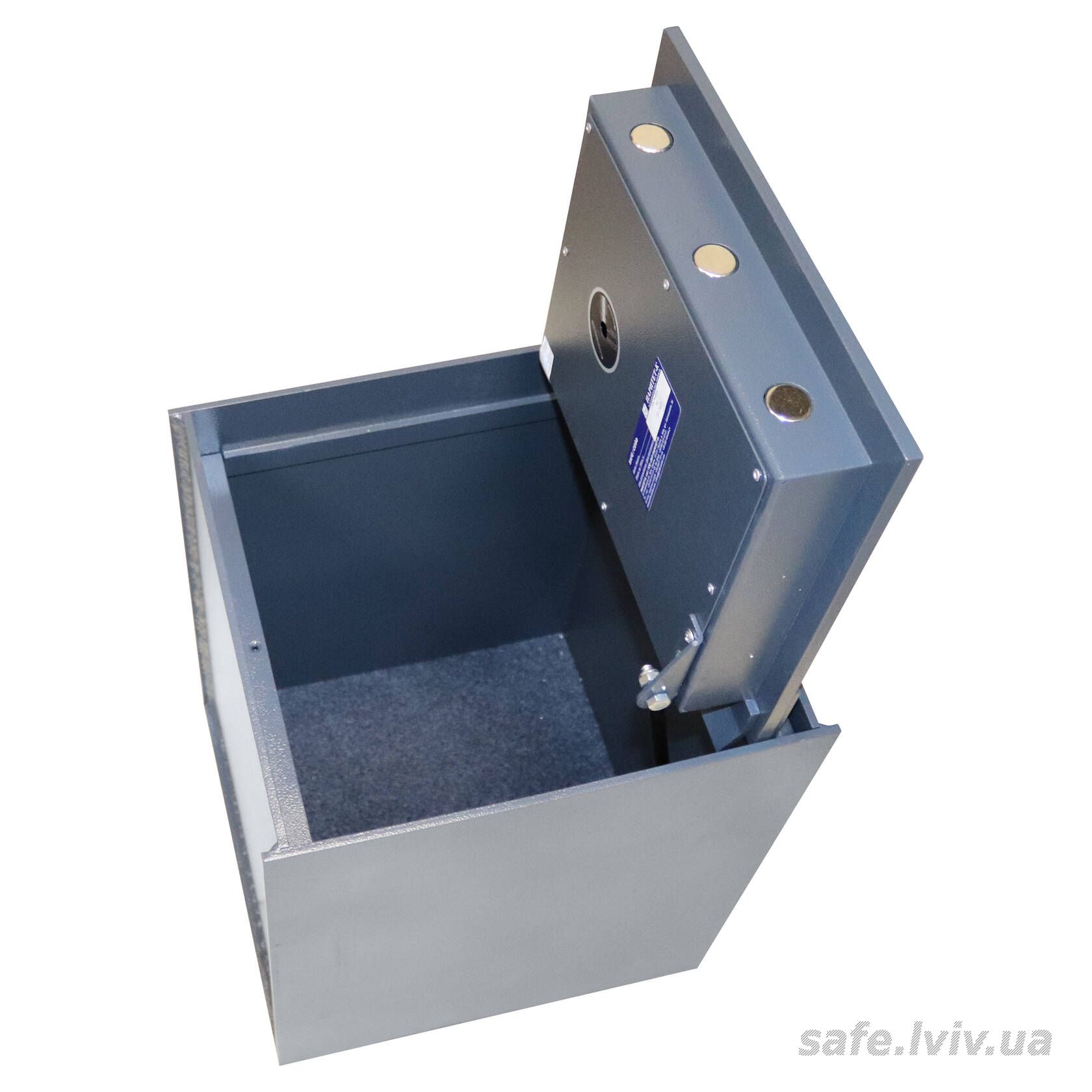 Griffon FB.3440.C це підлоговий (вбудований у підлогу) сейф, призначений для зберігання грошей, документів і цінностей у приватних будинках чи гаражах. Приховане встановлення у підлогу підвищує безпеку. Захист забезпечує конструкція корпусу 6 мм (сталь), дверей 10 мм (сталь), ригельна система одностороння, 3 ригелі Ø 25 мм та замок - кодовий механічний La GARD (США) VdS Class 1 (A).