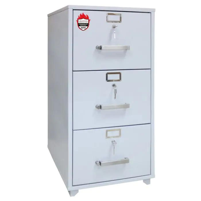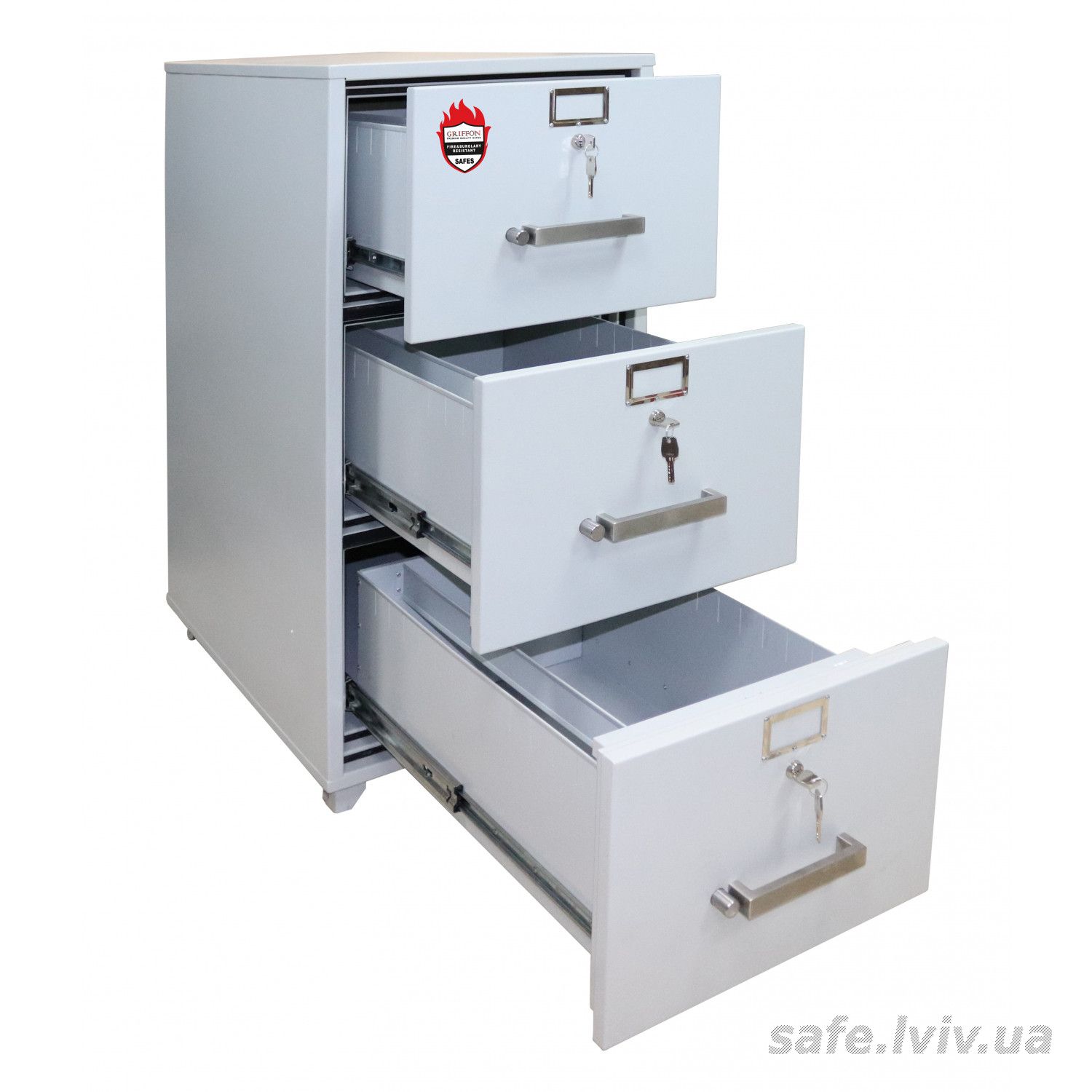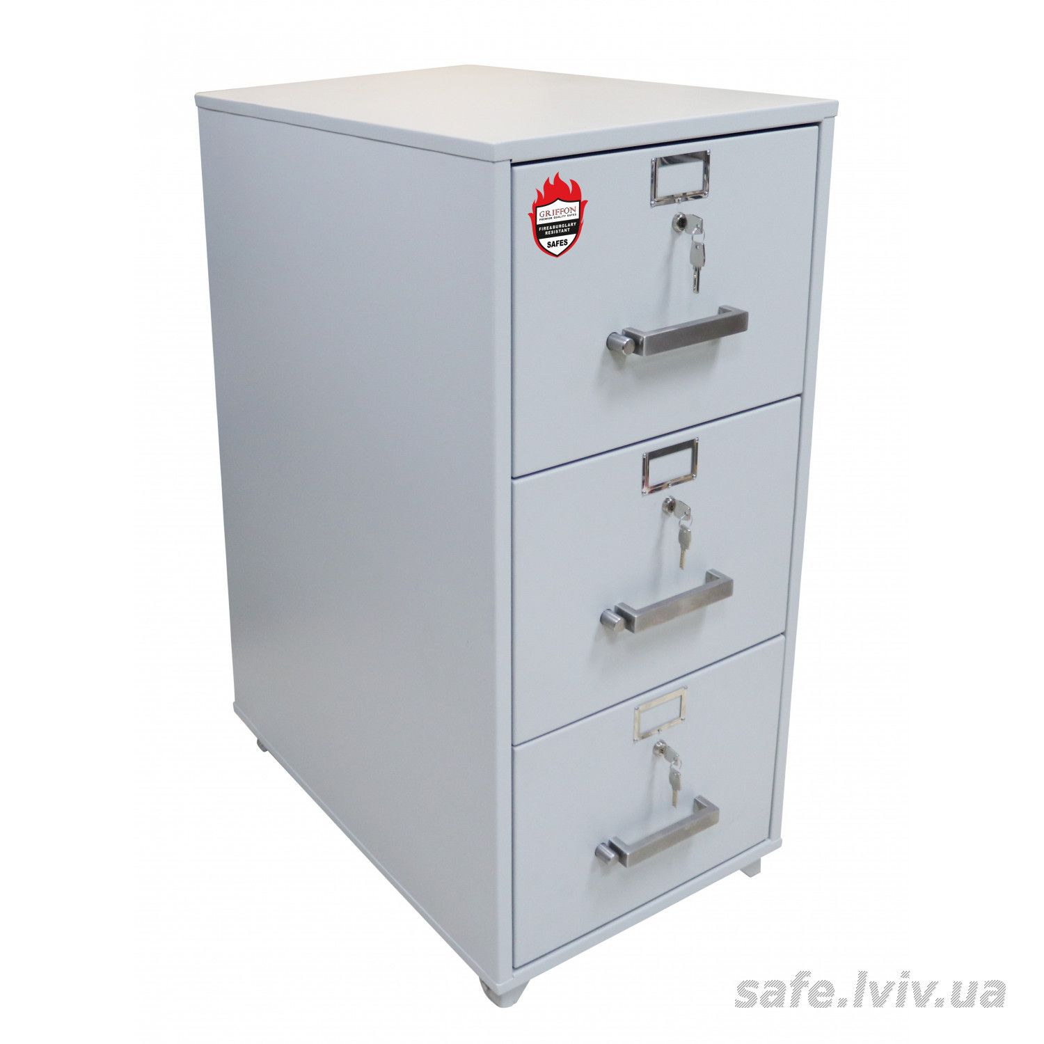 Griffon FF.3D.K це вогнестійка картотека для офісу, призначена для впорядкованого зберігання та захисту паперових документів від пожежі. Захист забезпечує конструкція корпусу , ригельна система двостороння, 2 ригелі Ø 16 мм та замок - ключовий EUROLOCKS (Польща). По периметру - подвійні термострічки. Комплектація - висувні ящики, колеса.