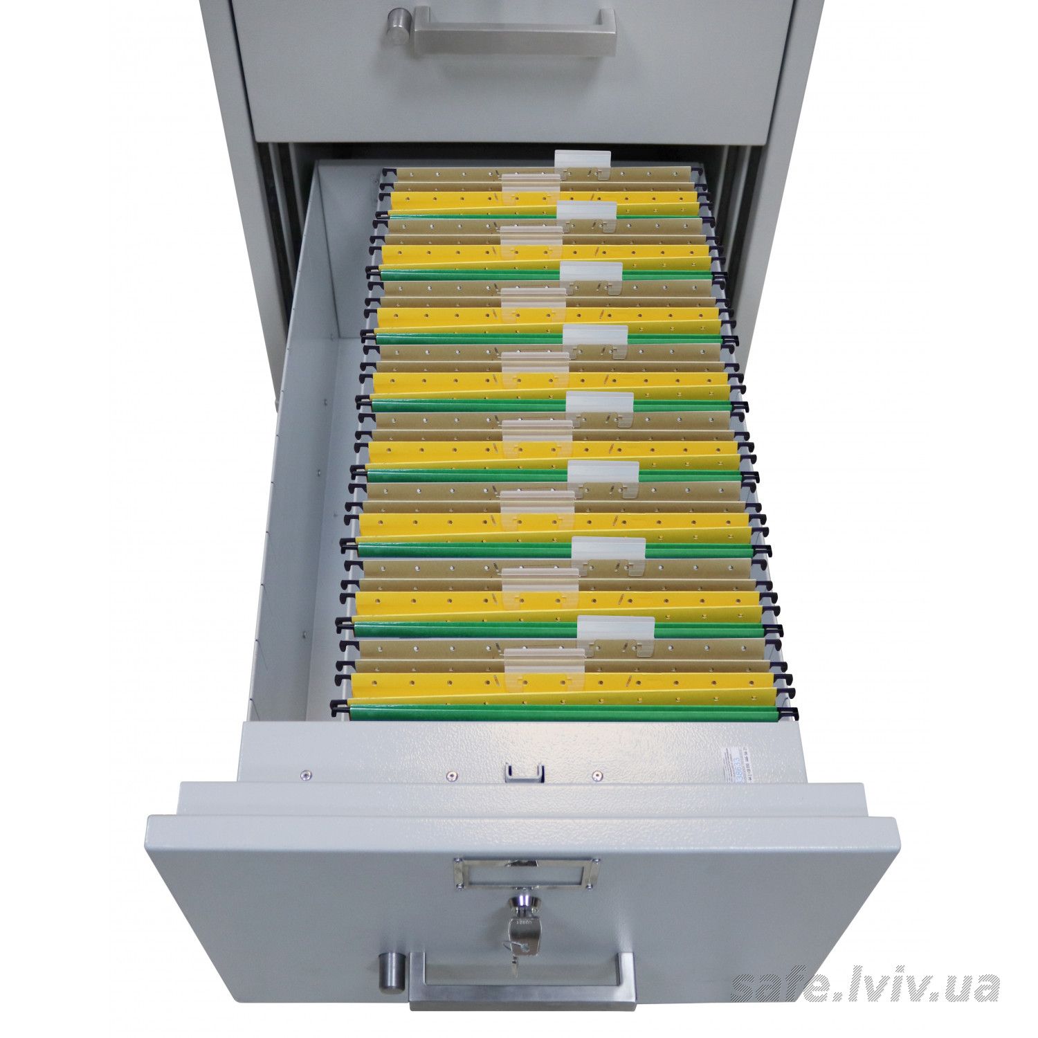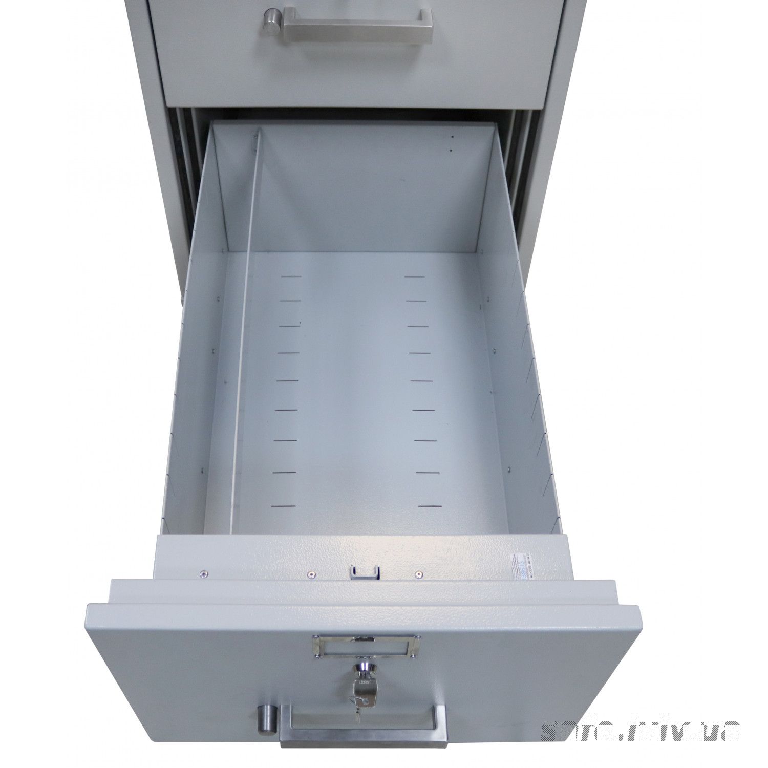 - Внутрішнє оснащення: шухляди під формати A4 та Foolscap; колеса для зручного переміщення.