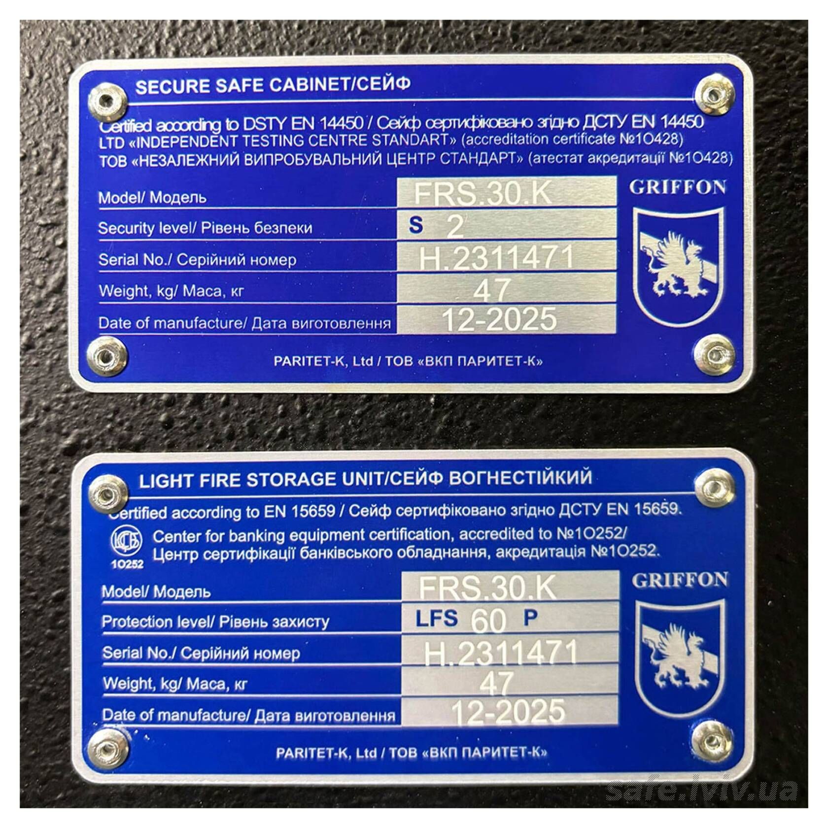 - Авторизований продавець: Сейфи Griffon Львів, вул. Генерала Курмановича, 2, Львів, Україна, 79040.