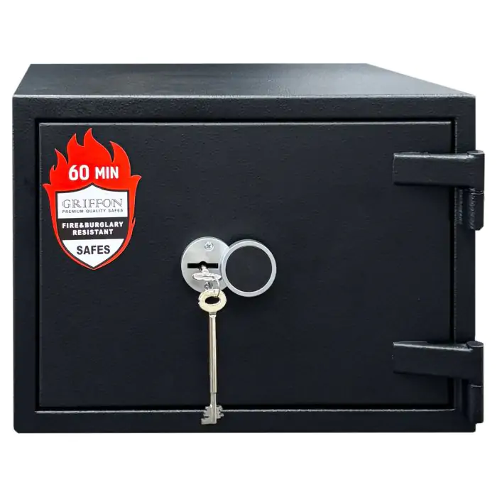Griffon FRS.30.K Black це вогнестійкий, сертифікований за класом LFS 60P, сейф, призначений для захисту архівних документів і цінностей від пожежі. Конструкція корпусу 53 мм (сталь - вогнестійкий бетон - сталь), дверей 124 мм (сталь - вогнестійкий бетон - сталь), ригельна система одностороння. 2 ригелі діаметром 25 мм та замок - ключовий WITTKOPP (Німеччина) VDS 1 (A). По периметру дверей - термострічка BASF (Німеччина).