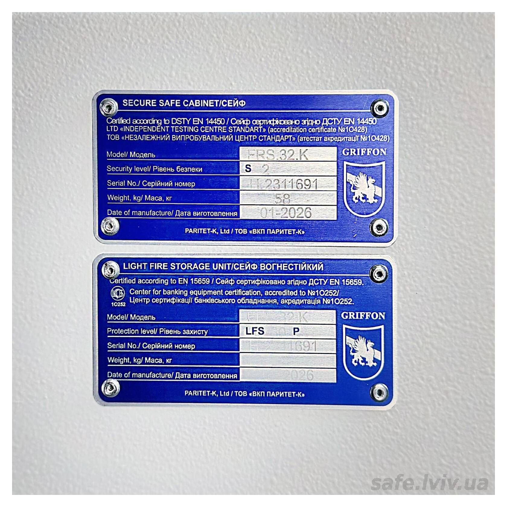 - Авторизований продавець: Сейфи Griffon Львів, вул. Генерала Курмановича, 2, Львів, Україна, 79040.