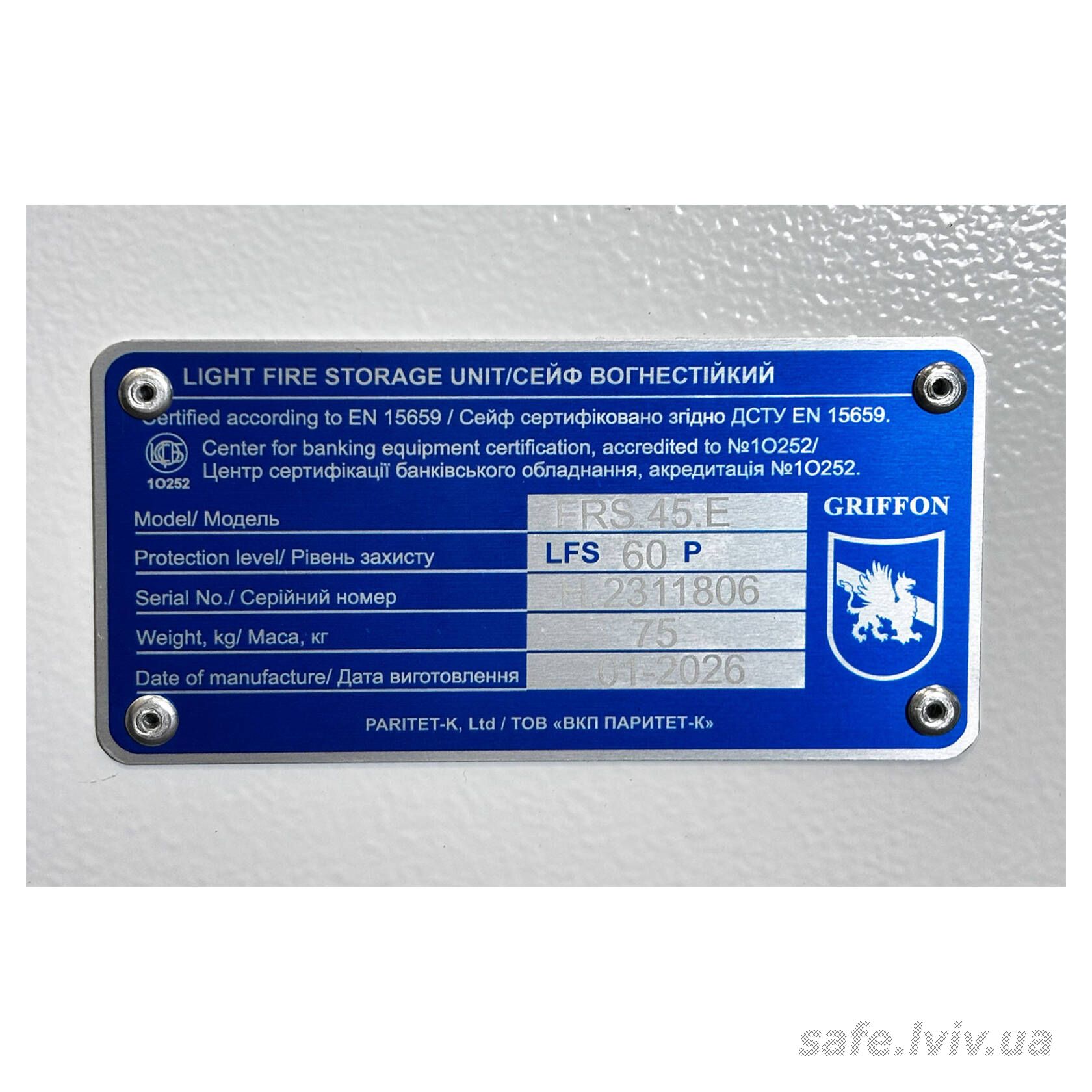 - Авторизований продавець: Сейфи Griffon Львів, вул. Генерала Курмановича, 2, Львів, Україна, 79040.