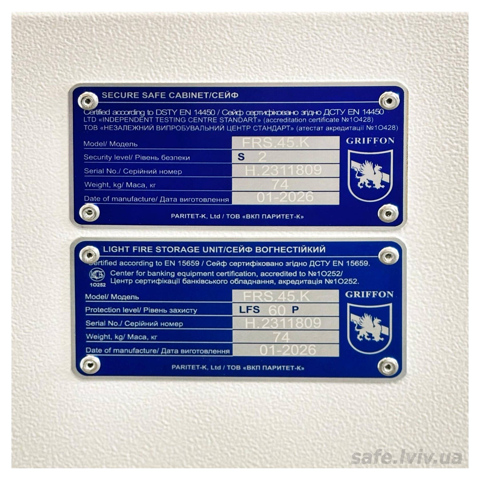- Авторизований продавець: Сейфи Griffon Львів, вул. Генерала Курмановича, 2, Львів, Україна, 79040.
