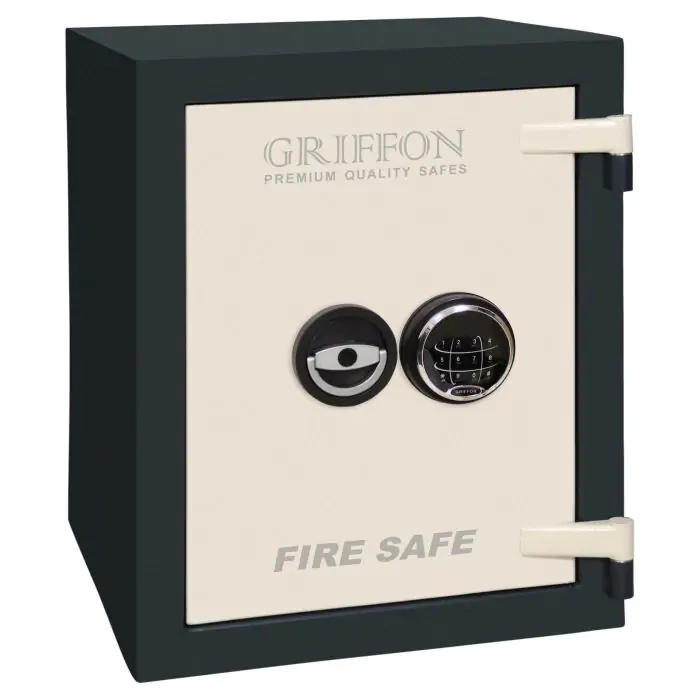 Griffon FS.57.E це вогнестійкий, сертифікований за класом LFS 30P, сейф, призначений для захисту документів, грошей і цінностей від пожежі вдома, в офісі та на підприємствах. Конструкція корпусу і дверей 43 мм (сталь - вогнестійкий бетон - сталь) та 99 мм (сталь - вогнестійкий бетон - сталь) у поєднанні з ригельною системою одностороння, 3 ригелі Ø 25 мм і сучасними замками забезпечує надійний рівень безпеки.