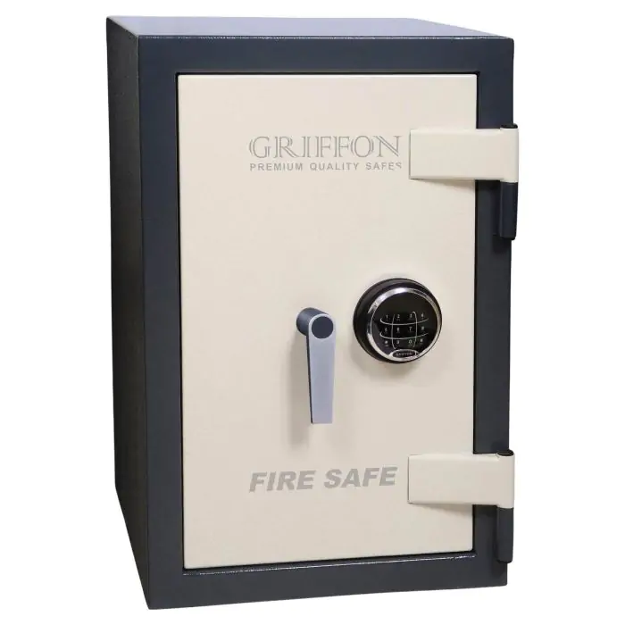 Griffon FS.70.E це вогнестійкий, сертифікований за класом LFS 30P, сейф, призначений для захисту документів, грошей і цінностей від пожежі вдома, в офісі та на підприємствах. Конструкція корпусу і дверей 43 мм (сталь - вогнестійкий бетон - сталь) та 99 мм (сталь - вогнестійкий бетон - сталь) у поєднанні з ригельною системою тристороння, 4 ригелі Ø 25 мм і сучасними замками забезпечує надійний рівень безпеки.