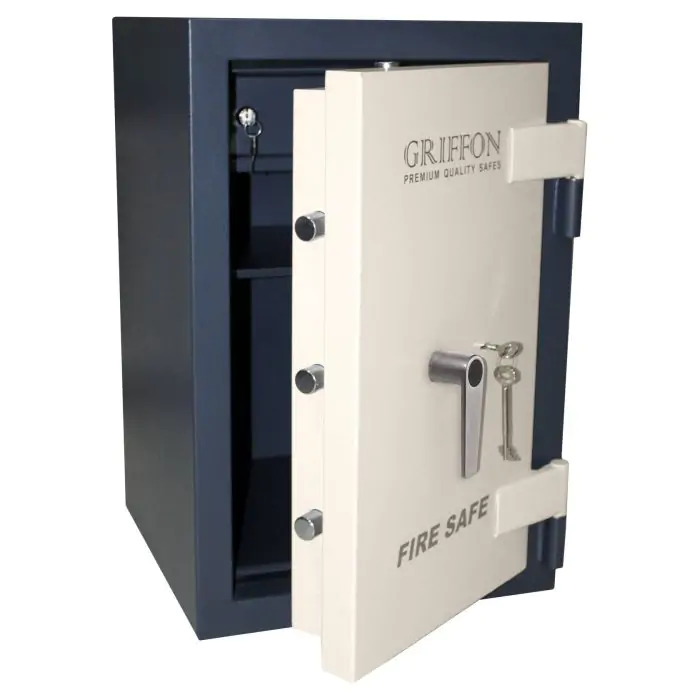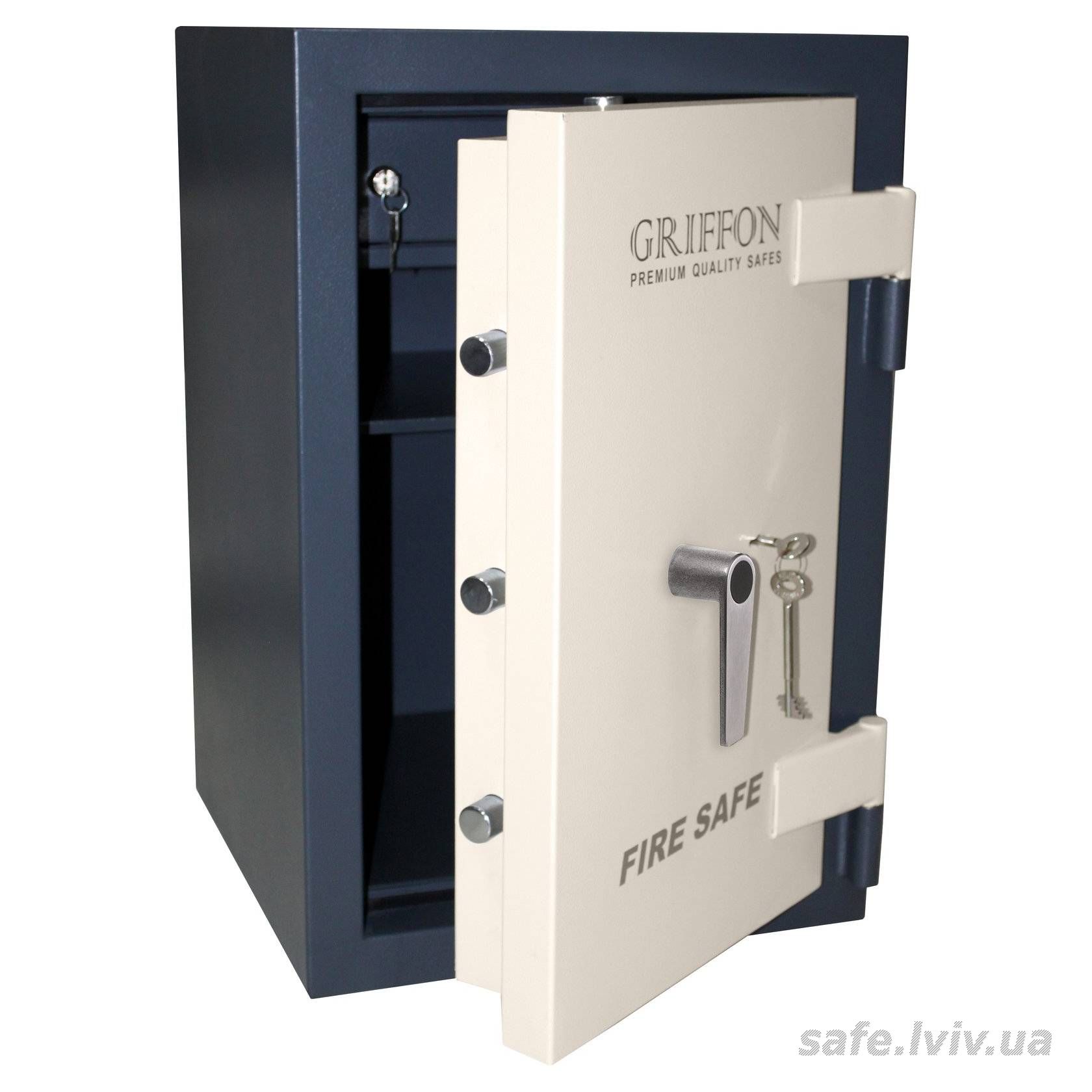 Griffon FS.70.K це вогнестійкий, сертифікований за класом LFS 30P, сейф, призначений для захисту документів, грошей і цінностей від пожежі вдома, в офісі та на підприємствах. Конструкція корпусу і дверей 43 мм (сталь - вогнестійкий бетон - сталь) та 99 мм (сталь - вогнестійкий бетон - сталь) у поєднанні з ригельною системою тристороння, 5 ригелів Ø 25 мм і сучасними замками забезпечує надійний рівень безпеки.