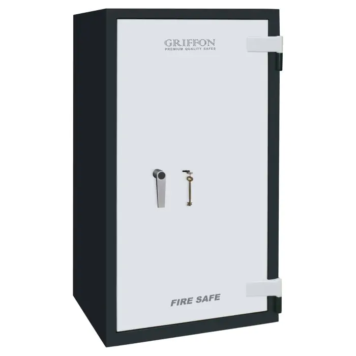 Griffon FSL.123.K це вогнестійкий, сертифікований за класом LFS 30P, сейф, призначений для захисту архівних документів і цінностей від пожежі. Конструкція корпусу 43 мм (сталь - вогнестійкий бетон - сталь), дверей 99 мм (сталь - вогнестійкий бетон - сталь), ригельна система тристороння, 5 ригелів Ø 25 мм та замок - ключовий STUV (Німеччина) VdS Class 1 (A). По периметру дверей - термострічка BASF (Німеччина).