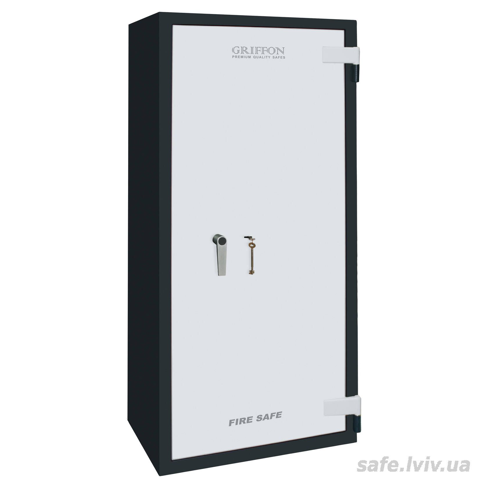 Griffon FSL.157.K це вогнестійкий, сертифікований за класом LFS 30P, сейф, призначений для захисту архівних документів і цінностей від пожежі. Конструкція корпусу 43 мм (сталь - вогнестійкий бетон - сталь), дверей 99 мм (сталь - вогнестійкий бетон - сталь), ригельна система тристороння, 5 ригелів Ø 25 мм та замок - ключовий STUV (Німеччина) VdS Class 1 (A). По периметру дверей - термострічка BASF (Німеччина).