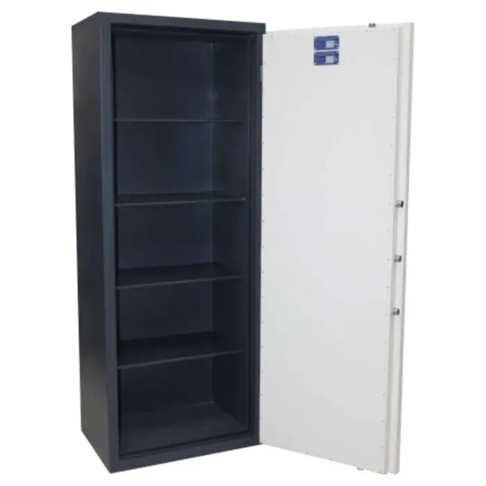 Griffon FSL.180.K це вогнестійкий, сертифікований за класом LFS 30P, сейф, призначений для захисту архівних документів і цінностей від пожежі. Конструкція корпусу 43 мм (сталь - вогнестійкий бетон - сталь), дверей 99 мм (сталь - вогнестійкий бетон - сталь), ригельна система тристороння, 5 ригелів Ø 25 мм та замок - ключовий STUV (Німеччина) VdS Class 1 (A). По периметру дверей - термострічка BASF (Німеччина).