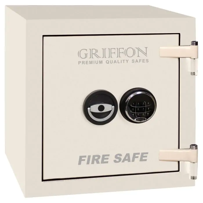 Griffon FSL.45.E Cream це вогнестійкий, сертифікований за класом LFS 30P, сейф, призначений для захисту архівних документів і цінностей від пожежі. Конструкція корпусу 43 мм (сталь - вогнестійкий бетон - сталь), дверей 99 мм (сталь - вогнестійкий бетон - сталь), ригельна система одностороння, 3 ригелі Ø 25 мм та замок - електронний кодовий Q2 (Китай). По периметру дверей - термострічка BASF (Німеччина).