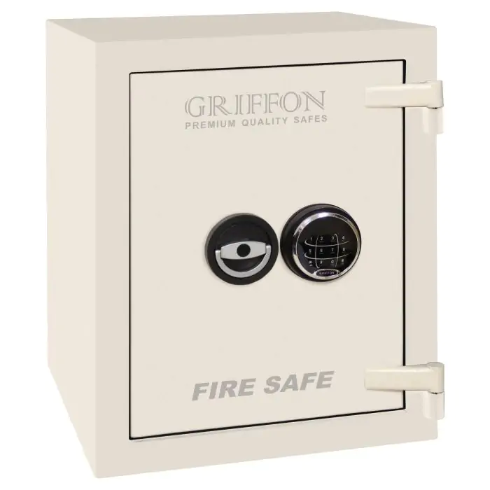 Griffon FSL.57.E Cream це вогнестійкий, сертифікований за класом LFS 30P, сейф, призначений для захисту архівних документів і цінностей від пожежі. Конструкція корпусу 43 мм (сталь - вогнестійкий бетон - сталь), дверей 99 мм (сталь - вогнестійкий бетон - сталь), ригельна система одностороння, 3 ригелі Ø 25 мм та замок - електронний кодовий Q2 (Китай). По периметру дверей - термострічка BASF (Німеччина).