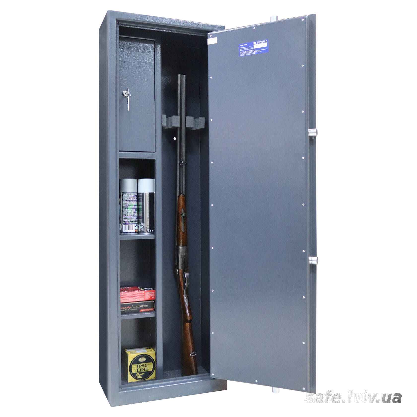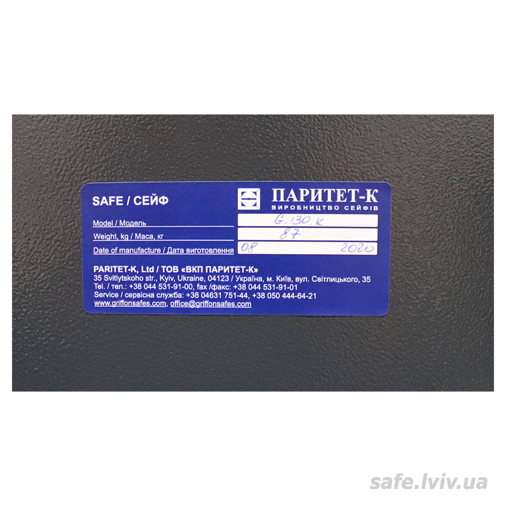 Griffon G.130.E це сейф для зброї, призначений для безпечного зберігання мисливської та спортивної зброї. Конструкція корпусу 3 мм (сталь), дверей 6 мм (сталь), ригельна система тристороння, 4 ригелі Ø 25 мм з антизрізами. Замок - електронний M-LOCKS (Нідерланди) VdS Class 2 (B). Місткість - 3 рушниць.