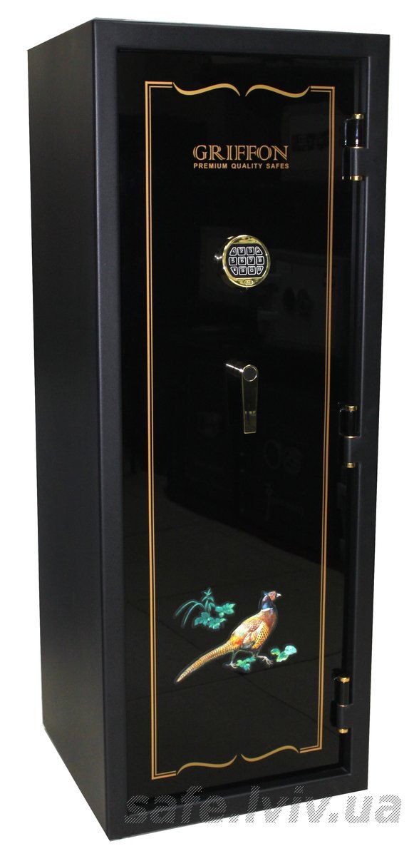 Griffon G.160.E Gloss Gold це сейф для зброї, призначений для безпечного зберігання мисливської та спортивної зброї. Конструкція корпусу 3 мм (сталь), дверей 6 мм (сталь), ригельна система тристороння, 4 ригелі Ø 25 мм з антизрізами. Замок - електронний M-LOCKS (Нідерланди) VdS Class 2 (B). Місткість - 3 рушниць.