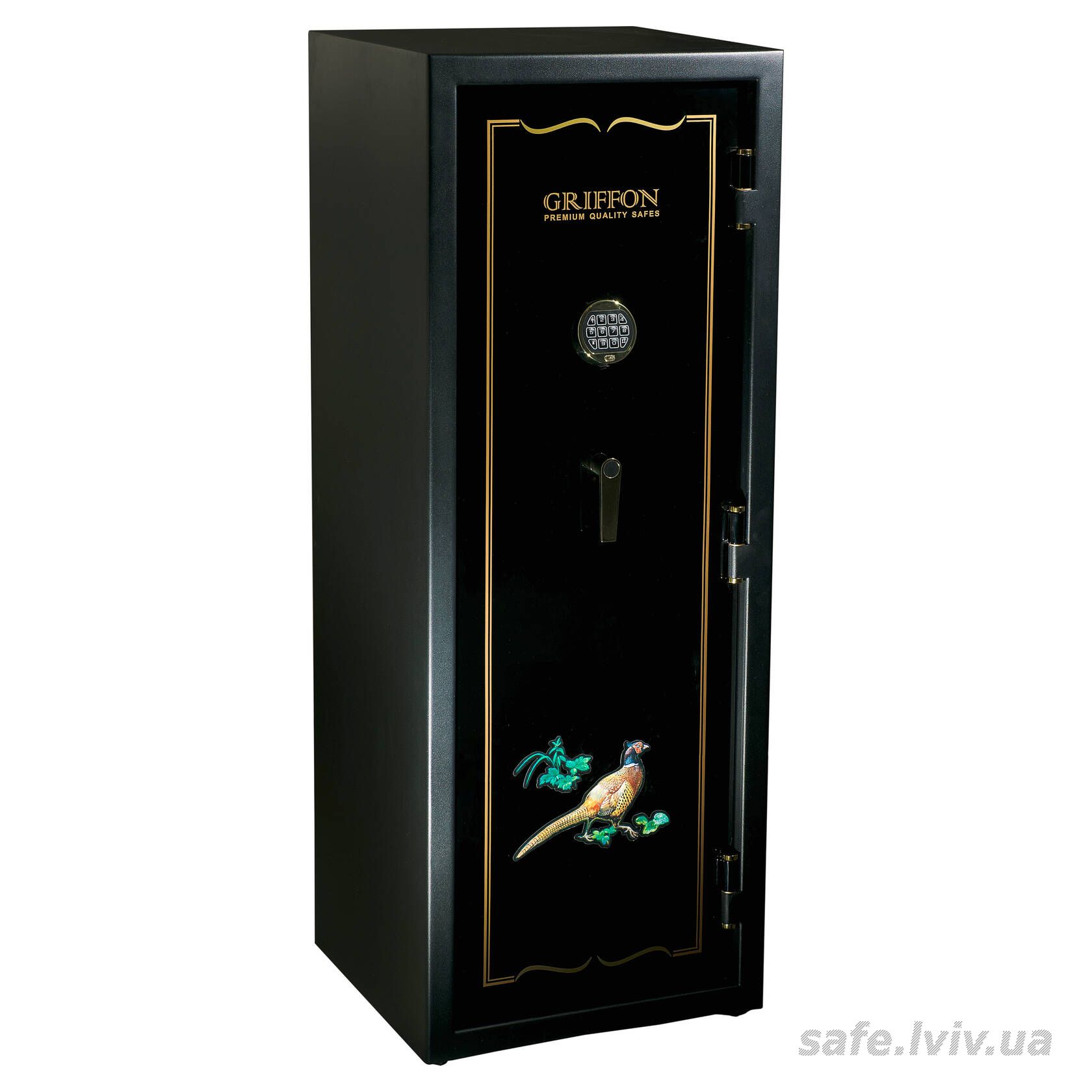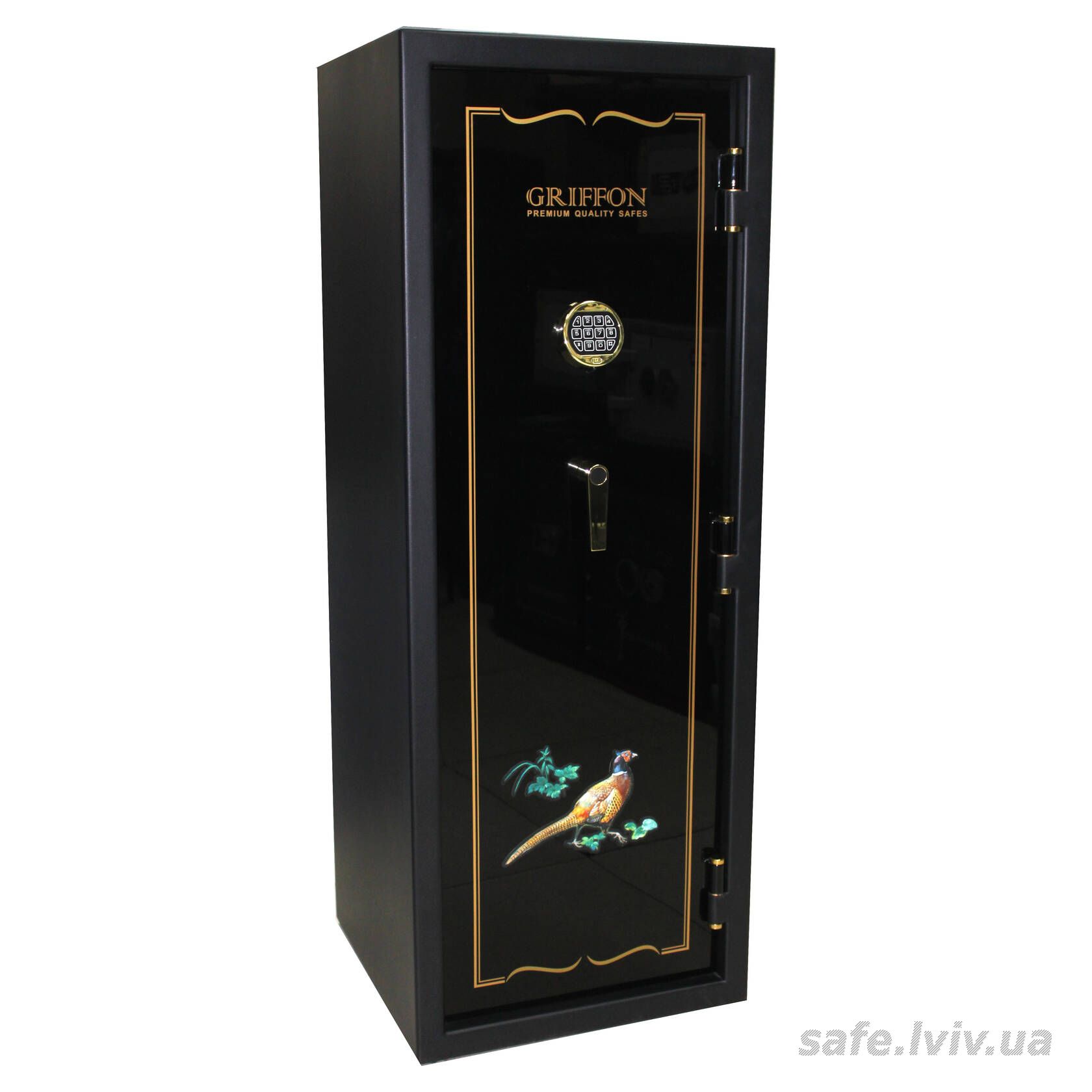 Griffon G.160.E Gold це сейф для зброї, призначений для безпечного зберігання мисливської та спортивної зброї. Конструкція корпусу 3 мм (сталь), дверей 6 мм (сталь), ригельна система тристороння, 4 ригелі Ø 25 мм з антизрізами. Замок - електронний M-LOCKS (Нідерланди) VdS Class 2 (B). Місткість - 10 рушниць.