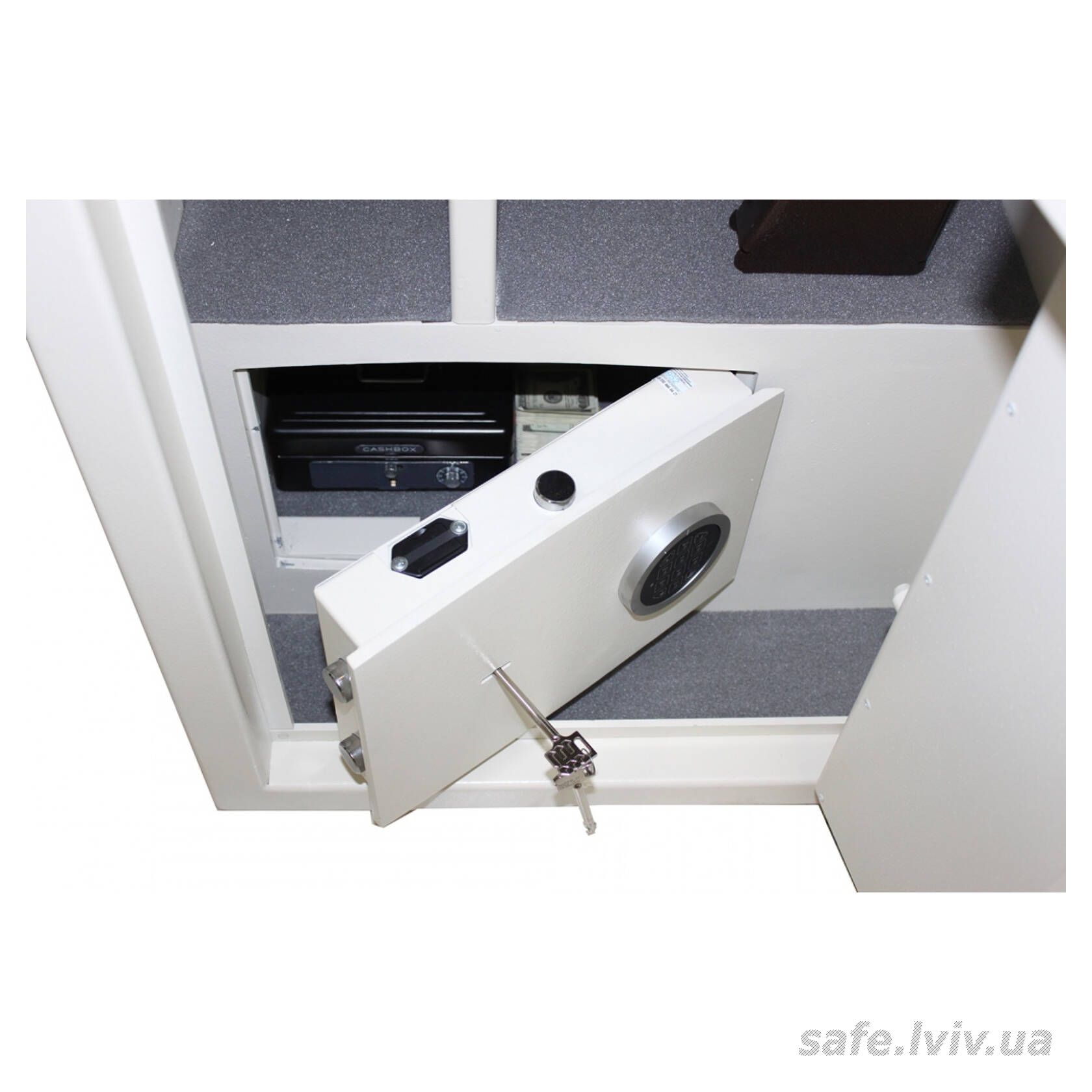 - Комплектація: 2 внутрішніх сейфи, зйомний магнітний ложемент, 3 полиці, зйомні навісні елементи на дверях.