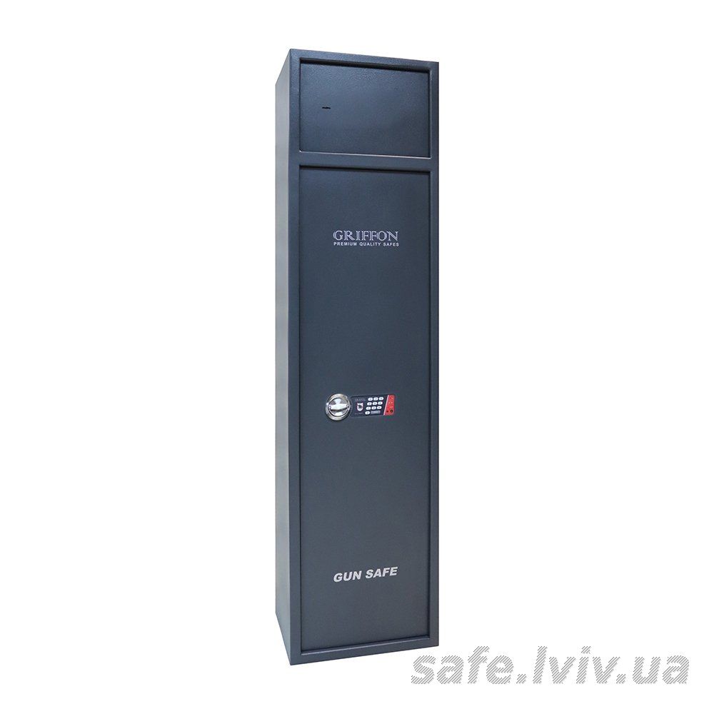 Griffon G.170.K.E це сейф для зброї, призначений для безпечного зберігання мисливської та спортивної зброї. Конструкція корпусу 3 мм (сталь), дверей 6 мм (сталь), ригельна система тристороння, 4 ригелі Ø 25 мм з антизрізами. Замок - електронний Griffon 2.0 (Україна), ключовий STUV (Німеччина) VdS Class 1 (A). Місткість - 7 рушниць.