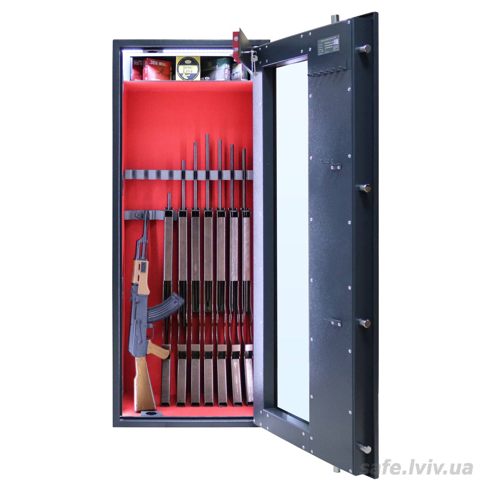 - Комплектація: пересувний ложемент під зброю з оптикою, внутрішнє оздоблення, трейзер; отвори для анкерування до стіни.