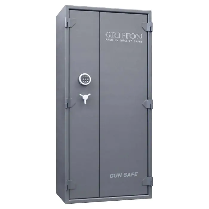 Griffon GD.700.E.T це зламостійкий сейф для зброї клас I за EN 1143-1, призначений для безпечного зберігання мисливської та спортивної зброї і боєприпасів у домі або офісі. Зламостійкість забезпечує конструкція корпусу 20 мм (сталь - сухий наповнювач - сталь), дверей 22 мм (ударотривке скло), ригельна система тристороння, 7 ригелів Ø 25 мм, антизрізи зі сторони петель та замок - електронний STUV SWINGLOX (Німеччина) VdS Class 2. Вогнестійкість - без вогнестійкості. Рекомендовано анкерне кріплення до стіни.