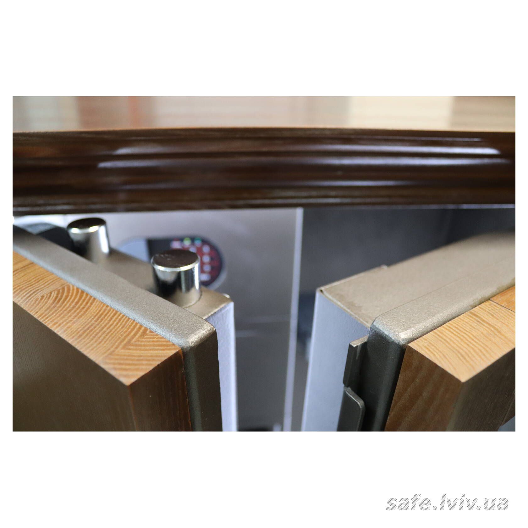 - Конструкція: корпус 20 мм (сталь - сухий наповнювач - сталь), двері 22 мм (ударотривке скло); ригельна система тристороння, 6 ригелів Ø 25 мм; система "зачіп".