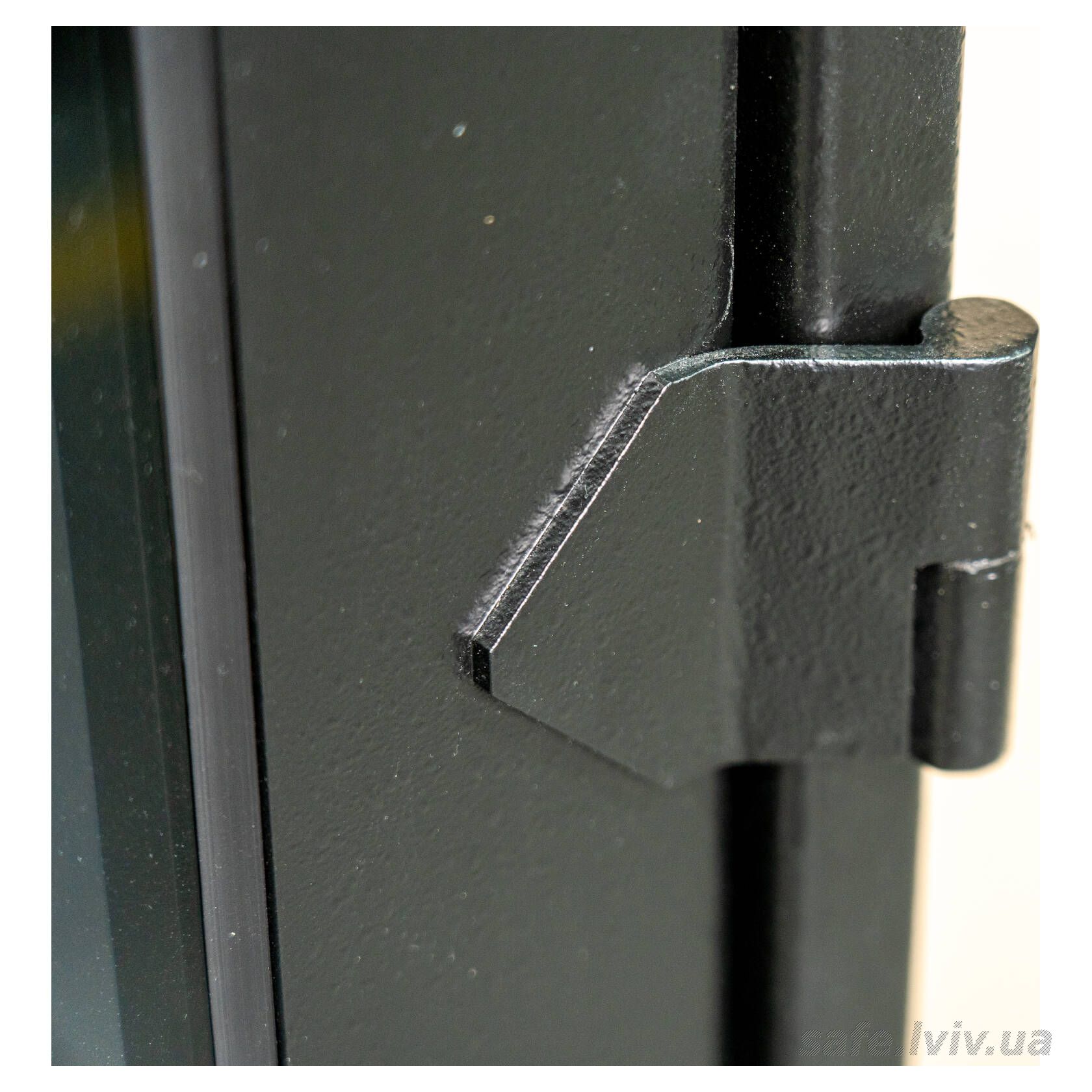 - Конструкція: корпус 20 мм (сталь - сухий наповнювач - сталь), двері 22 мм (ударотривке скло); ригельна система тристороння, 6 ригелів Ø 25 мм; система "зачіп".