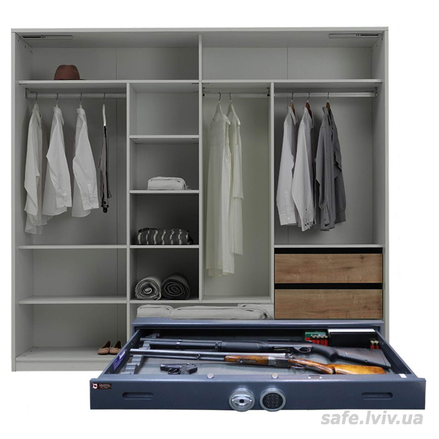 - Сейф вміщає: 7 одиниць зброї, документи А4, ноутбук, папки А4.