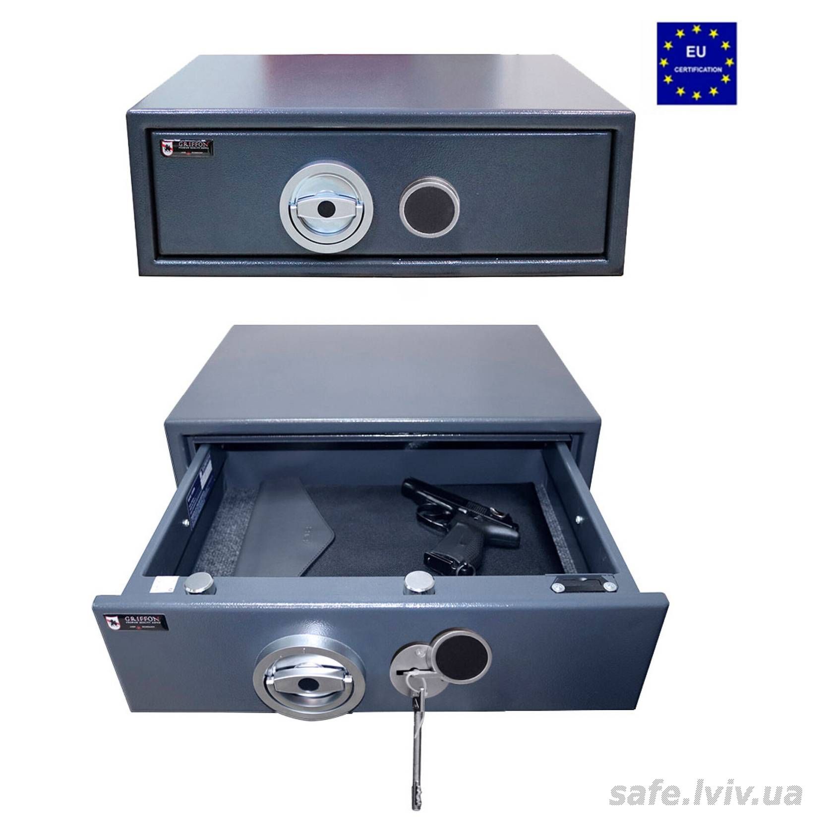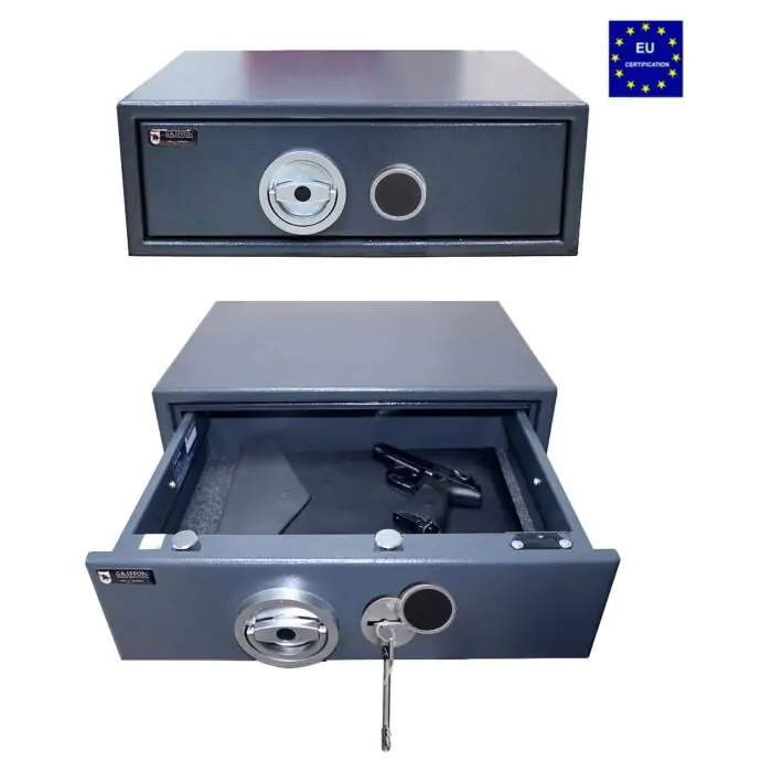 Griffon GDU.50.K це сейф-шухляда клас 0 за EN 1143-1, призначений для прихованого зберігання короткоствольної, мисливської або нарізної зброї, ноутбуків, документів А4 і папок у домі та офісі. Зламостійкість забезпечує конструкція корпусу , ригельна система , антизламний зачіп та замок - ключовий WITTKOPP (Німеччина) VDS 1 (A). Для додаткового захисту зона замка підсилена гартованими легованими пластинами. Усередині передбачено .