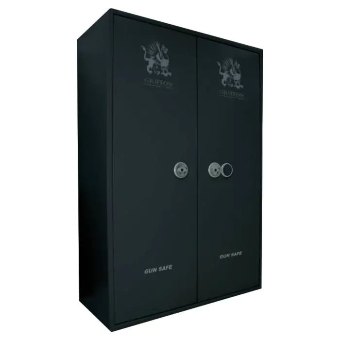 Griffon GE.1170/52.E це сертифікований сейф клас S1 за EN 14450, призначений для безпечного зберігання мисливської та спортивної зброї, патронів і аксесуарів у домі або на об’єктах стрілецької інфраструктури. Базовий рівень захисту забезпечує конструкція корпусу 3 мм (сталь) у поєднанні з ригельною системою тристороння, 5 ригелів Ø 25 мм, антизламною конструкцією зачіп та внутрішньою петлею антизріз.