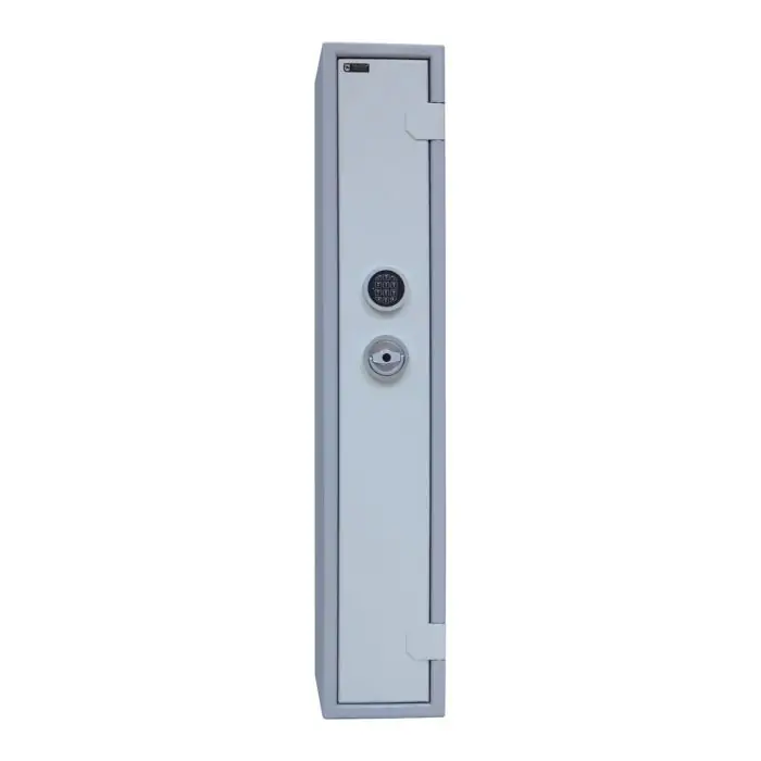 Griffon GE.250.E це сертифікований сейф клас S1 за EN 14450, призначений для безпечного зберігання мисливської та спортивної зброї, патронів і аксесуарів у домі або на об’єктах стрілецької інфраструктури. Базовий рівень захисту забезпечує конструкція корпусу 3 мм (сталь) у поєднанні з ригельною системою тристороння, 4 ригелі Ø 25 мм, антизламною конструкцією зачіп та внутрішньою петлею антизріз.