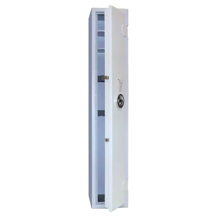 Griffon GE.250.K це сертифікований сейф клас S1 за EN 14450, призначений для безпечного зберігання мисливської та спортивної зброї, патронів і аксесуарів у домі або на об’єктах стрілецької інфраструктури. Базовий рівень захисту забезпечує конструкція корпусу 3 мм (сталь) у поєднанні з ригельною системою тристороння, 4 ригелі Ø 25 мм, антизламною конструкцією зачіп та внутрішньою петлею антизріз.