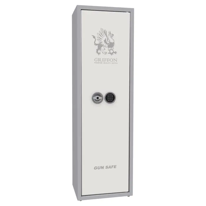 Griffon GE.450.E.L це сертифікований сейф клас S1 за EN 14450, призначений для безпечного зберігання мисливської та спортивної зброї, патронів і аксесуарів у домі або на об’єктах стрілецької інфраструктури. Базовий рівень захисту забезпечує конструкція корпусу 3 мм (сталь) у поєднанні з ригельною системою тристороння, 5 ригелів Ø 25 мм, антизламною конструкцією зачіп та внутрішньою петлею антизріз.