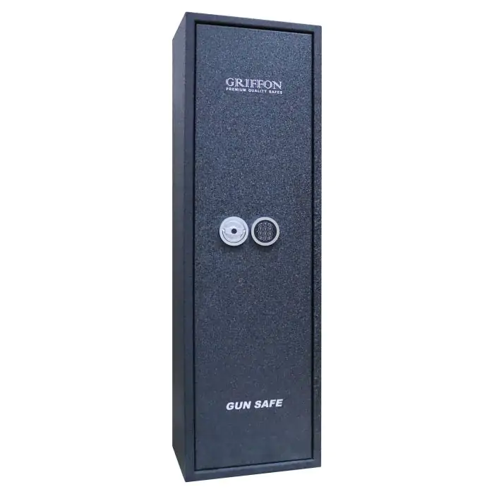 - Внутрішнє оснащення: пересувний ложемент під зброю з оптикою, тримачі для шомполів, 2 внутрішніх сейфи, 3 полиці, зйомні навісні елементи на дверях.