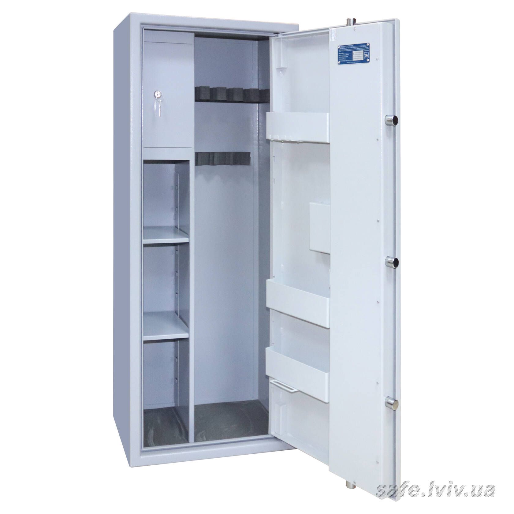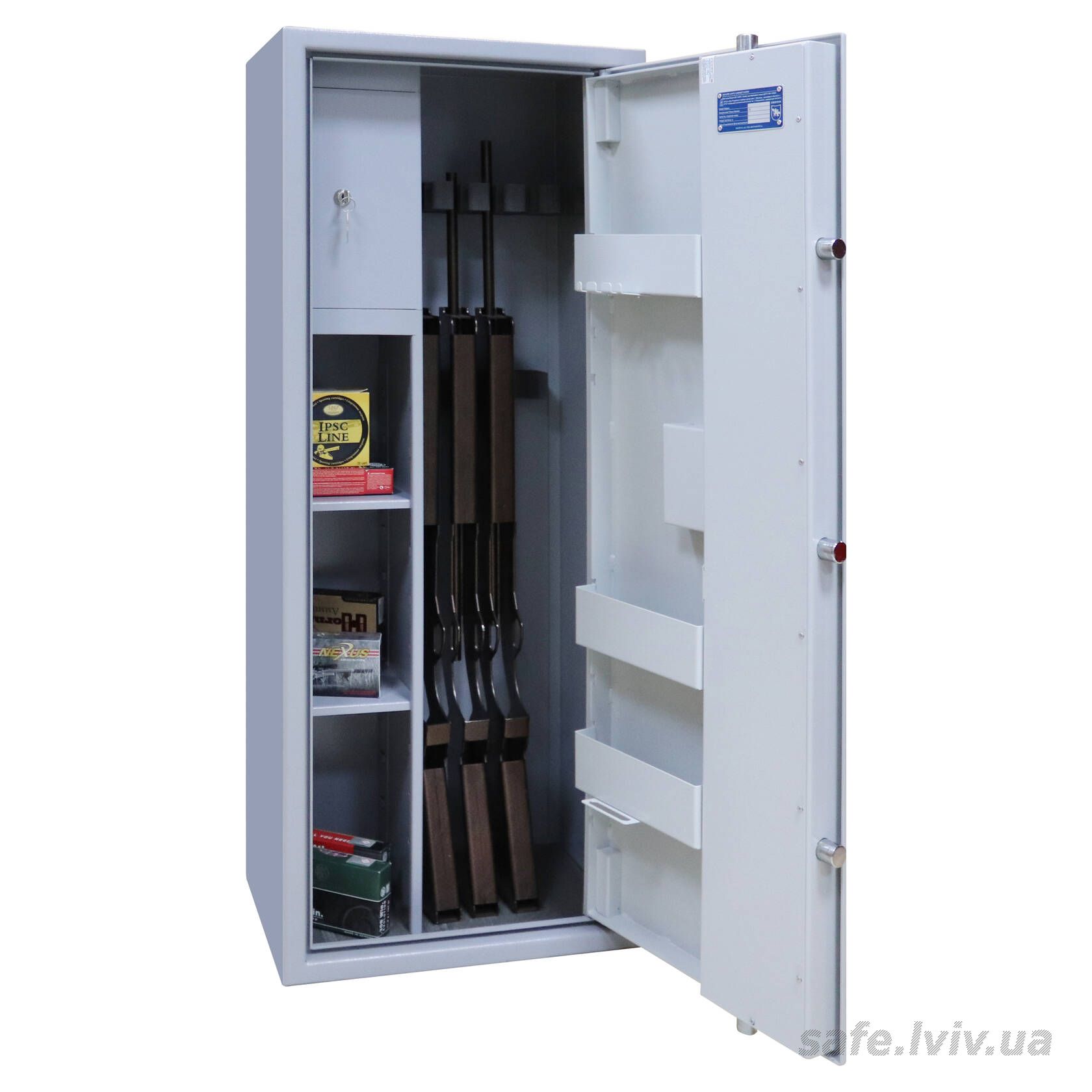 - Внутрішнє оснащення: пересувний ложемент під зброю з оптикою, тримачі для шомполів, трейзер, 3 полиці, зйомні навісні елементи на дверях.