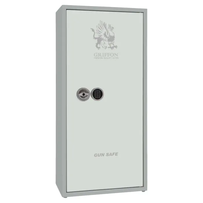 Griffon GE.650.E.L це сертифікований сейф клас S1 за EN 14450, призначений для безпечного зберігання мисливської та спортивної зброї, патронів і аксесуарів у домі або на об’єктах стрілецької інфраструктури. Базовий рівень захисту забезпечує конструкція корпусу 3 мм (сталь) у поєднанні з ригельною системою тристороння, 5 ригелів Ø 25 мм, антизламною конструкцією зачіп та внутрішньою петлею антизріз.