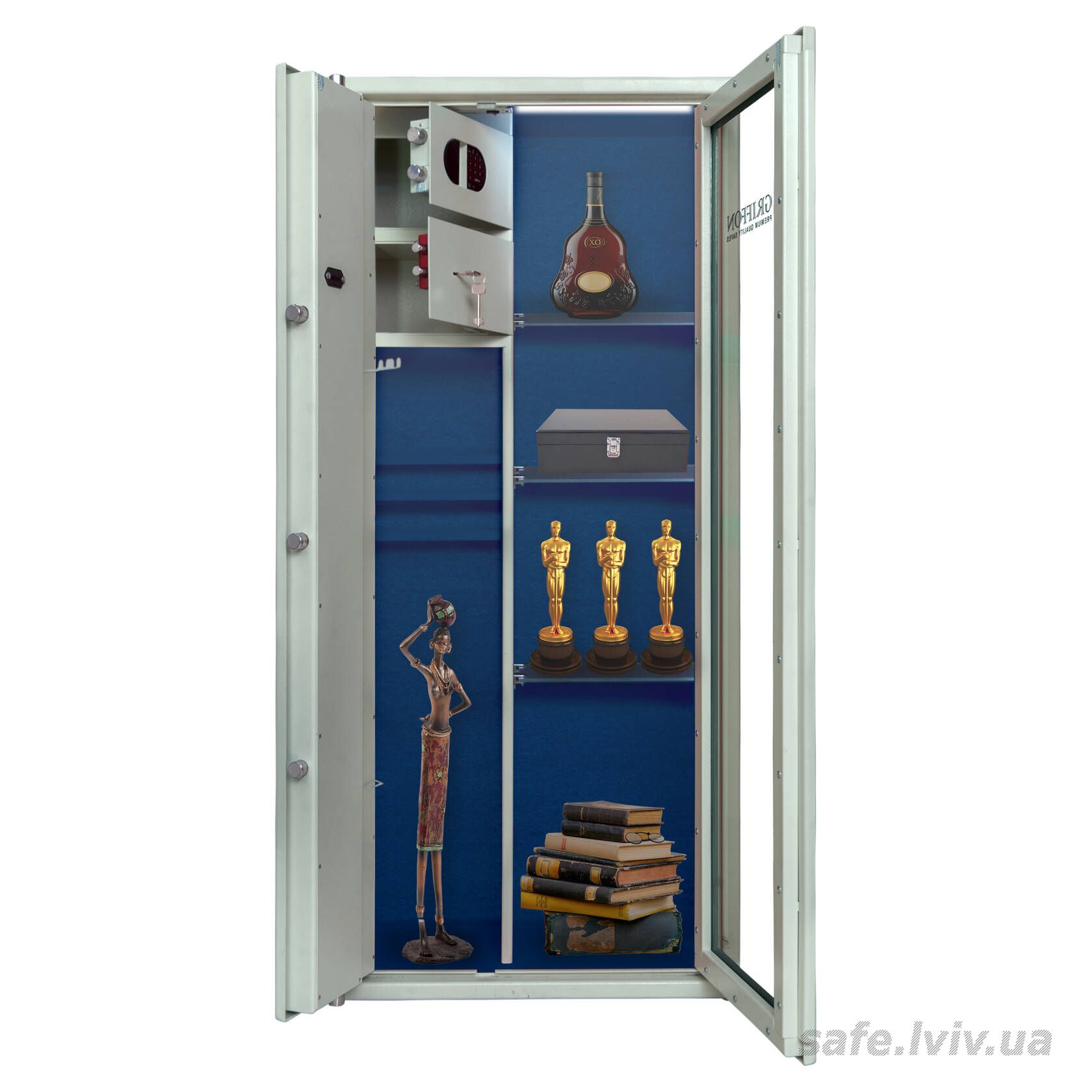 - Комплектація: 6 полиць, 2 внутрішніх сейфи, внутрішнє оздоблення, підсвітка.