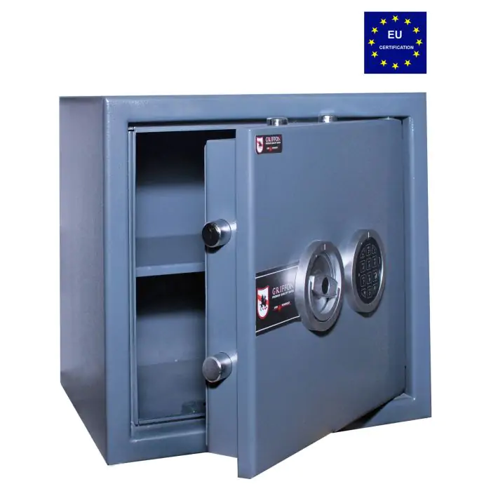 Griffon GH.40.E - це сертифікований збройовий сейф клас 0 за EN 1143-1, призначений для безпечного зберігання зброї заввишки до . Конструкція корпусу 20 мм (сталь - зламостійкий бетон - сталь) підсилена антизламною системою зачіп. Двері обладнані ригельною системою тристороння, 6 ригелів Ø 25 мм. Замок - електронний M-LOCKS (Нідерланди) VdS Class 2 (B). Вогнестійкість - без вогнестійкості.