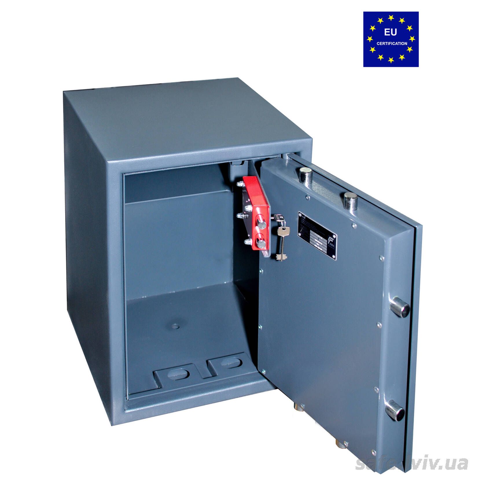- Конструкція: корпус 20 мм (сталь - зламостійкий бетон - сталь); ригельна система тристороння, 6 ригелів Ø 25 мм.