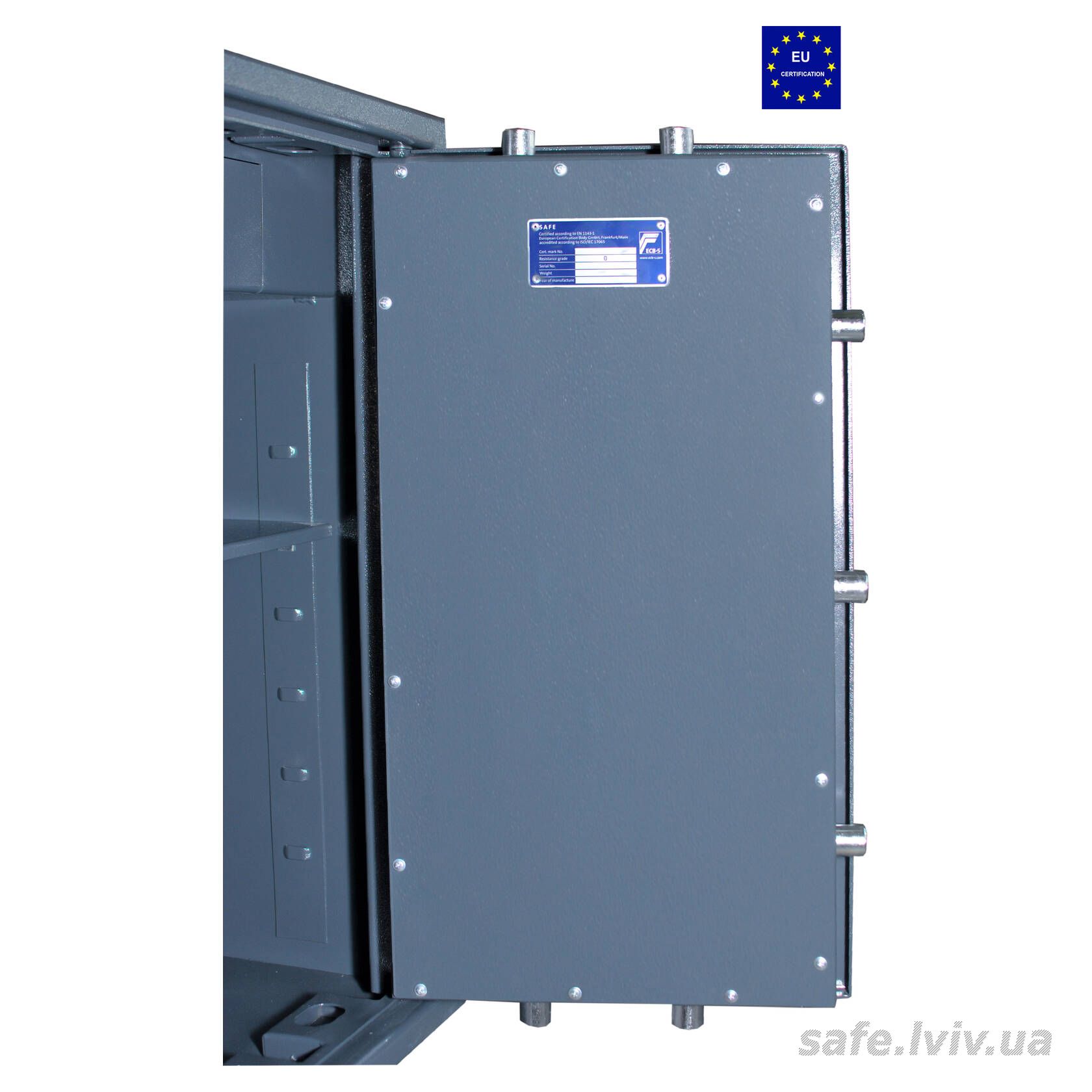 - Конструкція: корпус 20 мм (сталь - зламостійкий бетон - сталь); ригельна система тристороння, 7 ригелів Ø 25 мм.