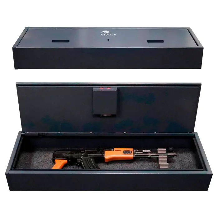 Hunter GL.95.K це недорогий бюджетний сейф для зброї, призначений для зберігання гладкоствольної зброї, набоїв і аксесуарів у домі чи офісі. Конструкція корпусу 1.2 мм (сталь) і дверей 2.4 мм (сталь), протизламна дверна конструкція, ригельна система та замок ключовий забезпечують базовий рівень захисту. Передбачено анкерні вузли для фіксації до стіни.