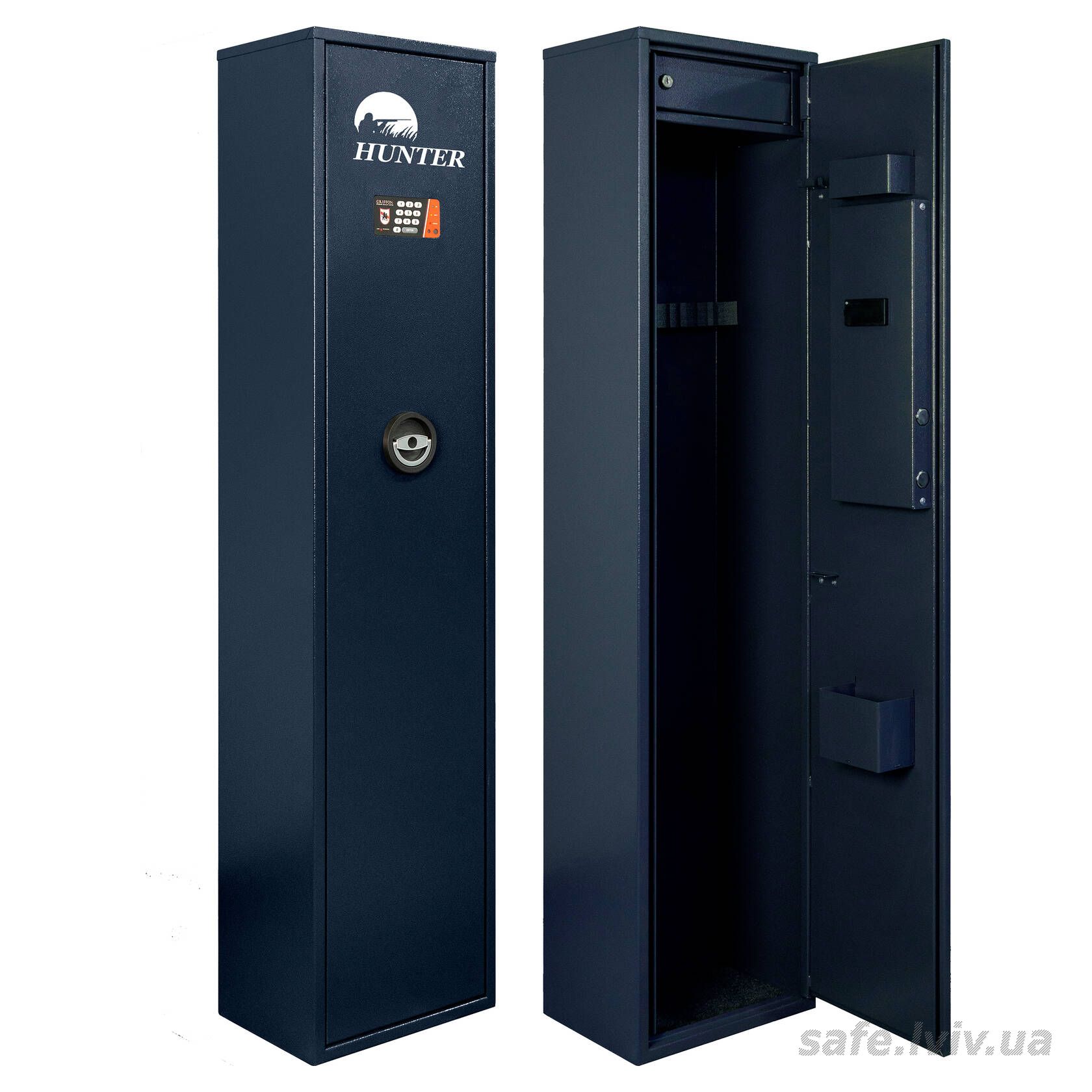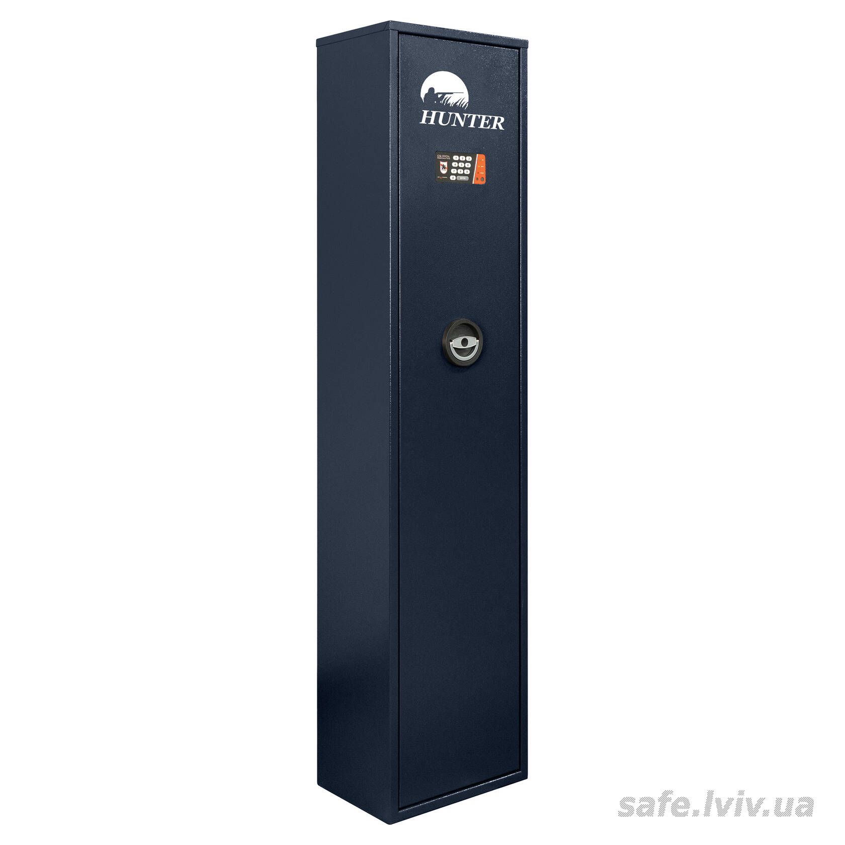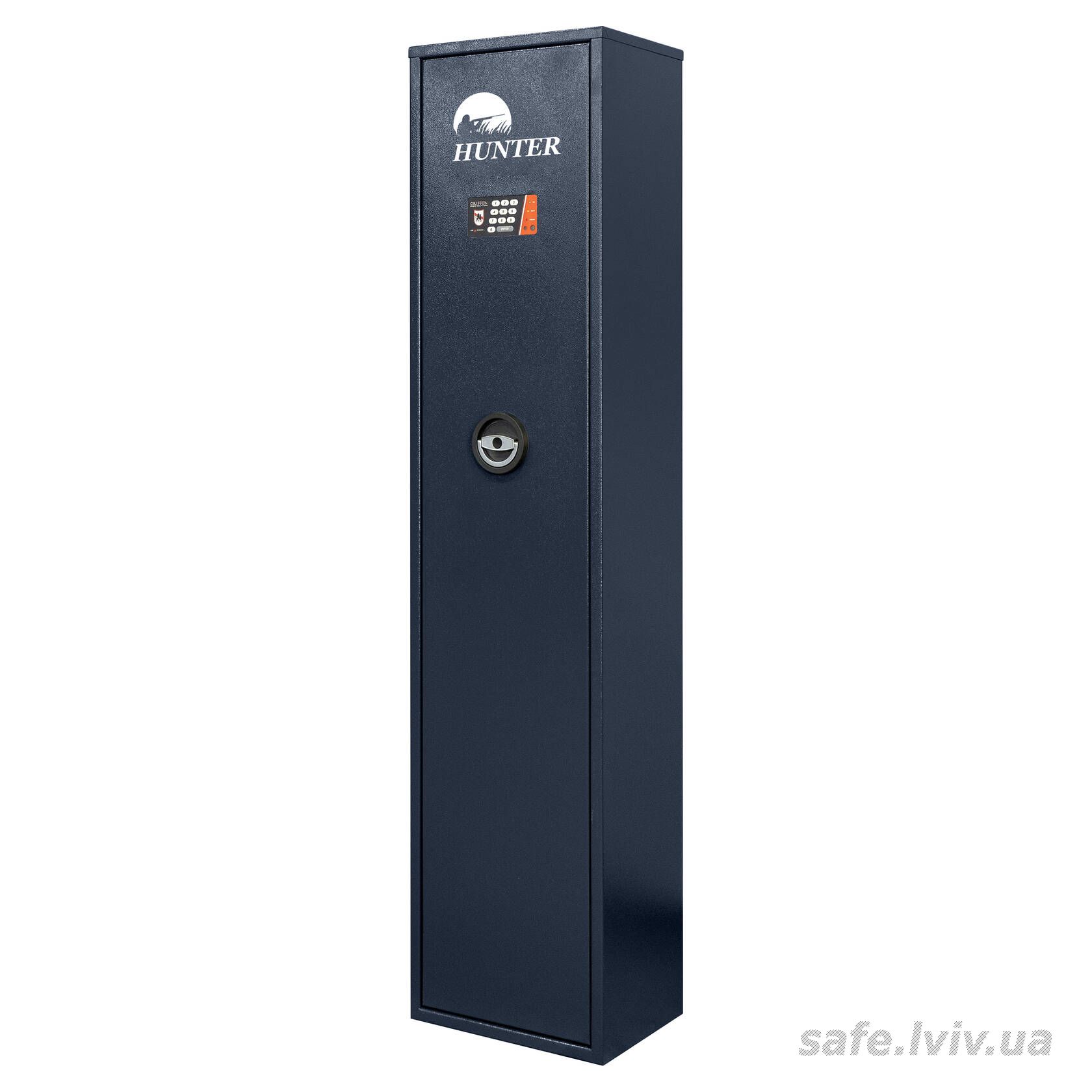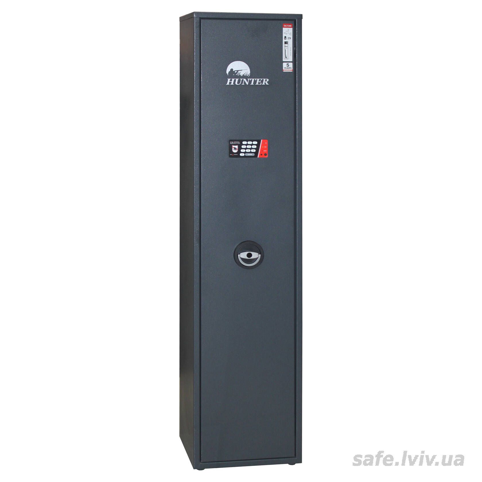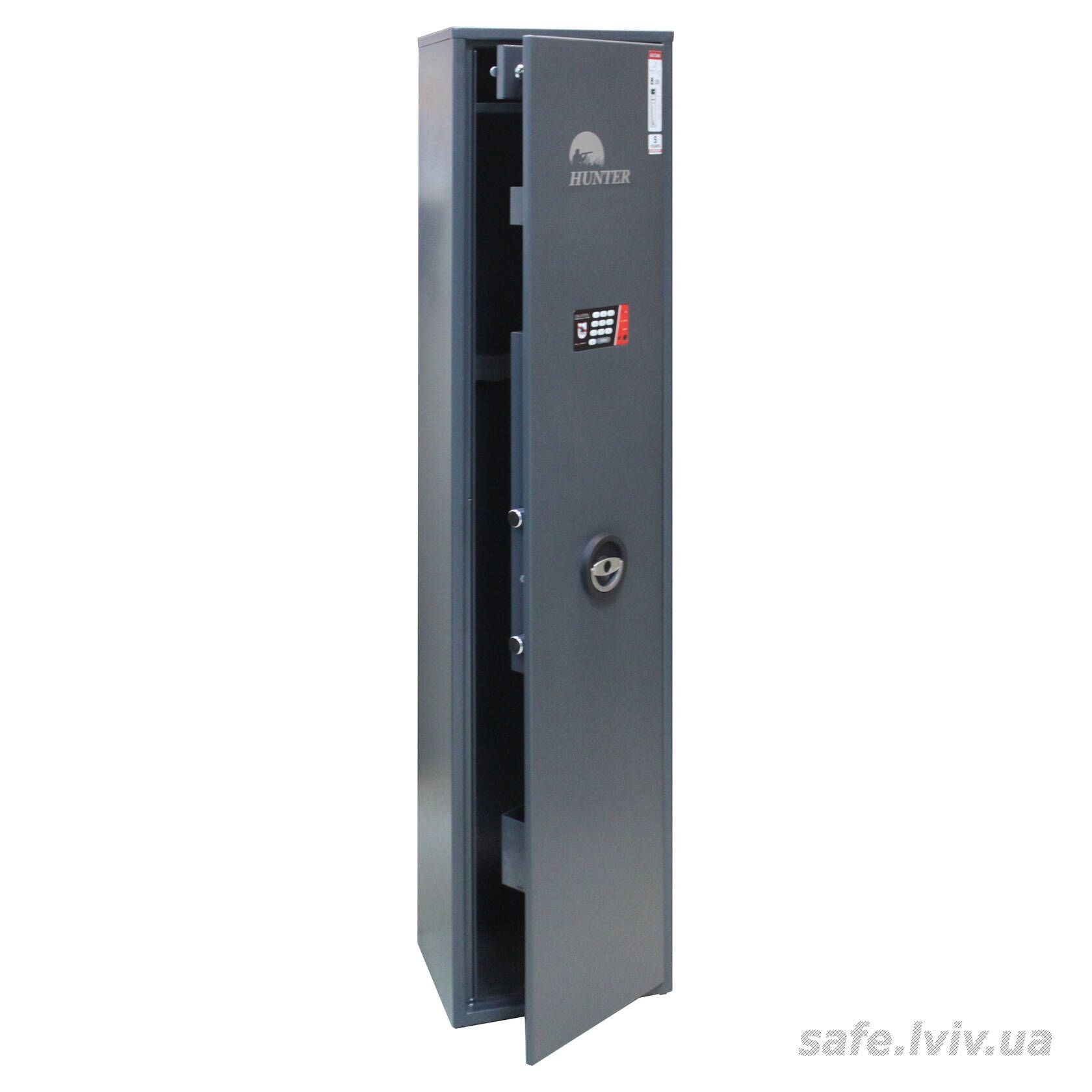 Hunter GLT.340.E це недорогий бюджетний сейф для зброї, призначений для зберігання гладкоствольної зброї, набоїв і аксесуарів у домі чи офісі. Конструкція корпусу 1.2 мм (сталь) і дверей 2.4 мм (сталь), протизламна дверна конструкція, ригельна система одностороння, 2 ригелі Ø 25 мм та замок електронний забезпечують базовий рівень захисту. Передбачено анкерні вузли для фіксації до стіни.