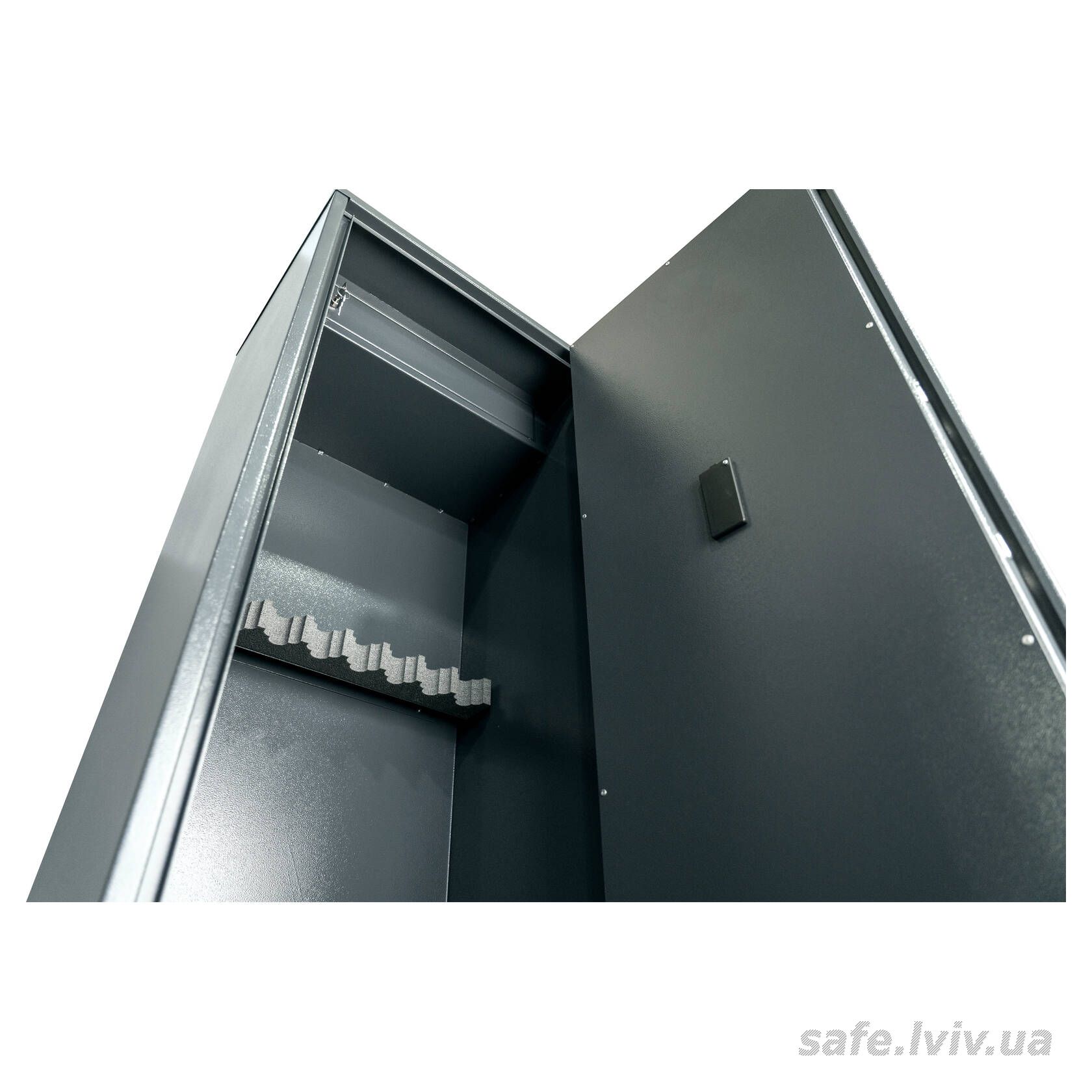 Hunter GLT.470/35.E це недорогий бюджетний сейф для зброї, призначений для зберігання гладкоствольної зброї, набоїв і аксесуарів у домі чи офісі. Конструкція корпусу 1.2 мм (сталь) і дверей 2.4 мм (сталь), протизламна дверна конструкція, ригельна система одностороння, 4 ригелі Ø 25 мм та замок електронний забезпечують базовий рівень захисту. Передбачено анкерні вузли для фіксації до стіни.