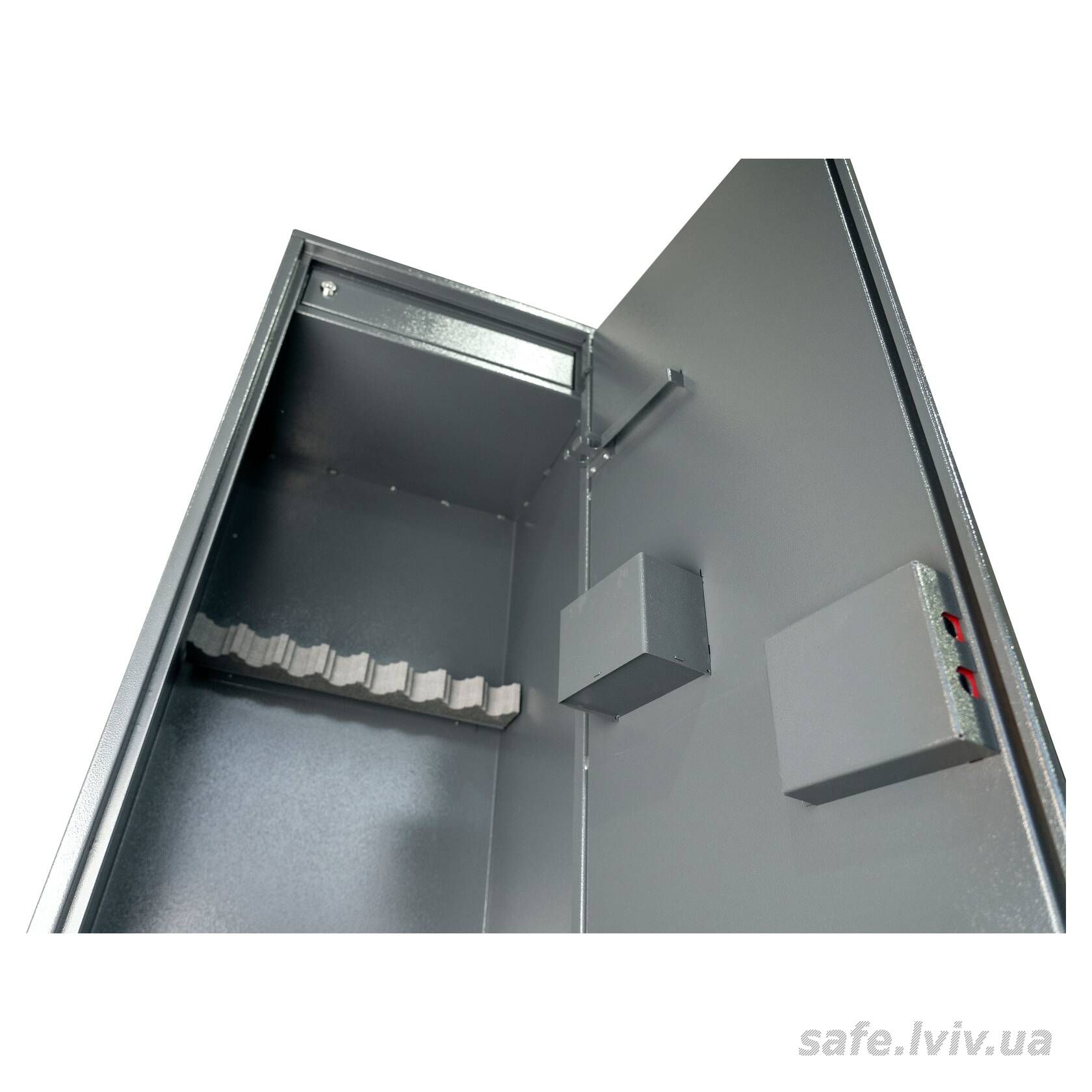 - Конструкція: корпус 1.2 мм (сталь), двері 2.4 мм (сталь); протизламна конструкція дверей; анкерні вузли для кріплення до стіни.