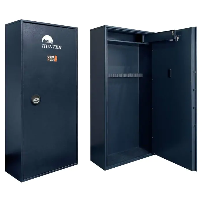 Hunter GLT.700.E це недорогий бюджетний сейф для зброї, призначений для зберігання гладкоствольної зброї, набоїв і аксесуарів у домі чи офісі. Конструкція корпусу 1.5 мм (сталь) і дверей 3 мм (сталь), протизламна дверна конструкція, ригельна система одностороння, 4 ригелі Ø 25 мм та замок електронний забезпечують базовий рівень захисту. Передбачено анкерні вузли для фіксації до стіни.