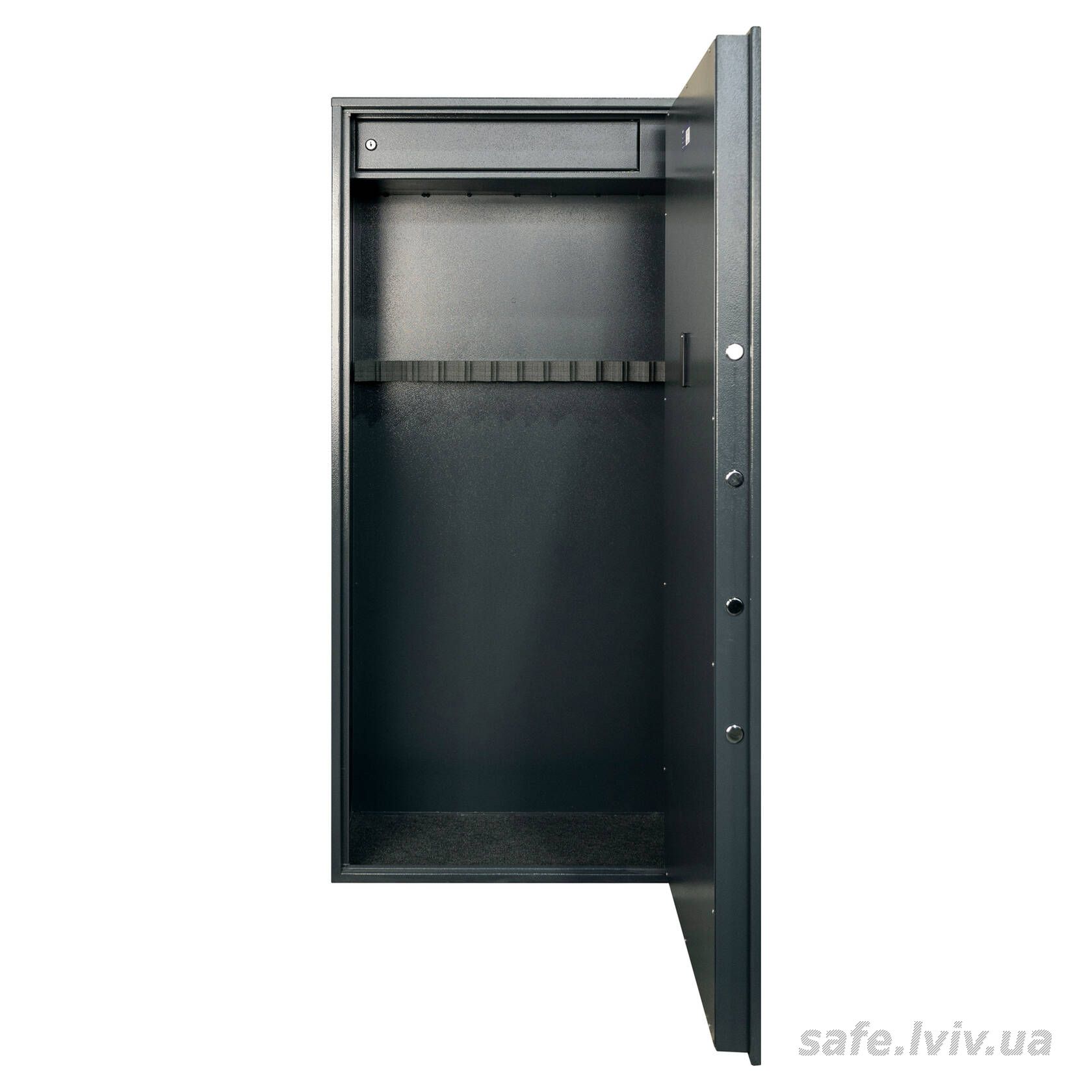 - Конструкція: корпус 1.5 мм (сталь), двері 3 мм (сталь); протизламна конструкція дверей; анкерні вузли для кріплення до стіни.