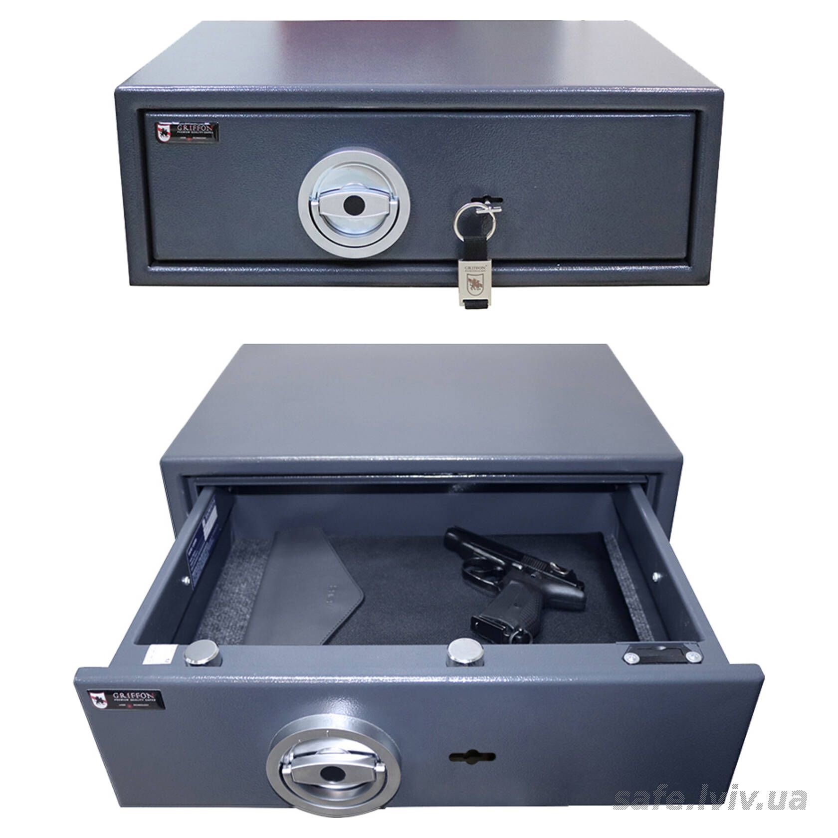 Griffon GU.50.K це горизонтальний сейф клас S1 за EN 14450 у форматі шухляди, призначений для прихованого вбудовування в меблі для зберігання зброї, ноутбуків, документів і цінностей у домі або офісі. Зламостійкість забезпечує конструкція корпусу 3 мм (сталь), дверей 3 мм (сталь), ригельна система тристороння, 4 ригелі Ø 25 мм та замок ключовий STUV (Німеччина) VdS Class 1 (A). Конструкція передбачає швидкий доступ і зручний монтаж під ліжком, у тумбі або шафі.