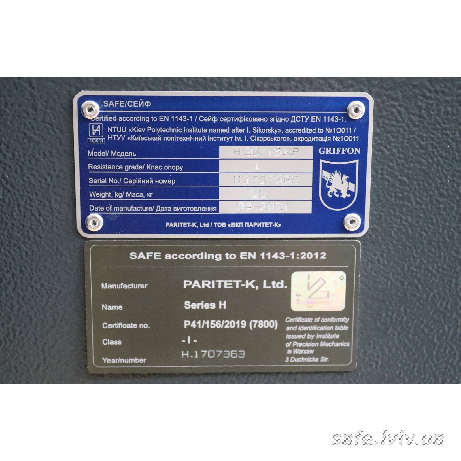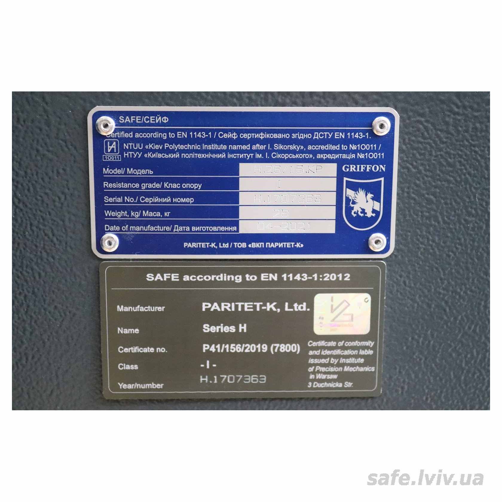 - Авторизований продавець: Сейфи Griffon Львів, вул. Генерала Курмановича, 2, Львів, Україна, 79040.