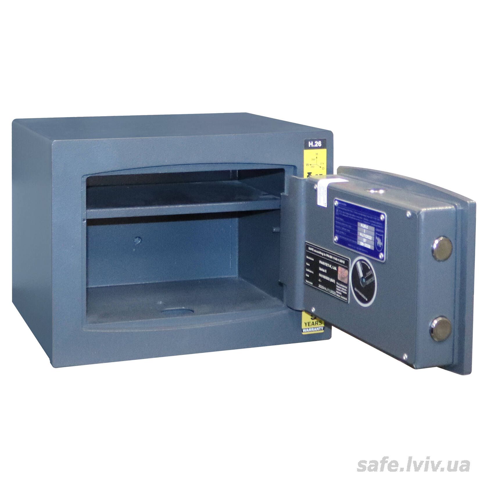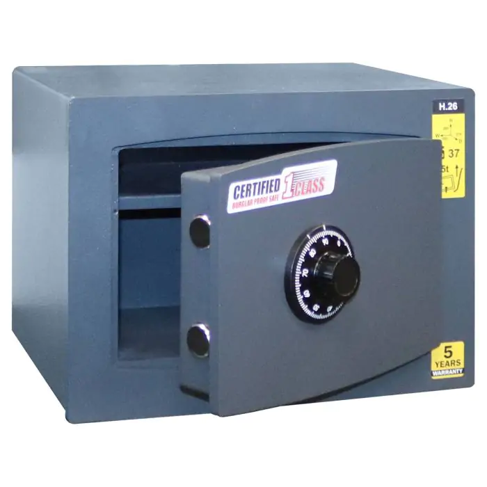 Griffon H.26.C Dark Grey це сертифікований зламостійкий сейф клас I за EN 1143-1 та без вогнестійкості, призначений для зберігання грошей, документів, прикрас і цінностей у домі або офісі. Зламостійкість забезпечує конструкція корпусу 25 мм (сталь - зламостійкий бетон - сталь), дверей 14 мм (сталь), ригельна система тристороння, 4 ригелі Ø 25 мм та замок кодовий механічний La GARD (США) VdS Class 1 (A). Рекомендовані ліміти зберігання - до 2000 мінімальних зарплат для особистого користування та до 1000 для комерційного.