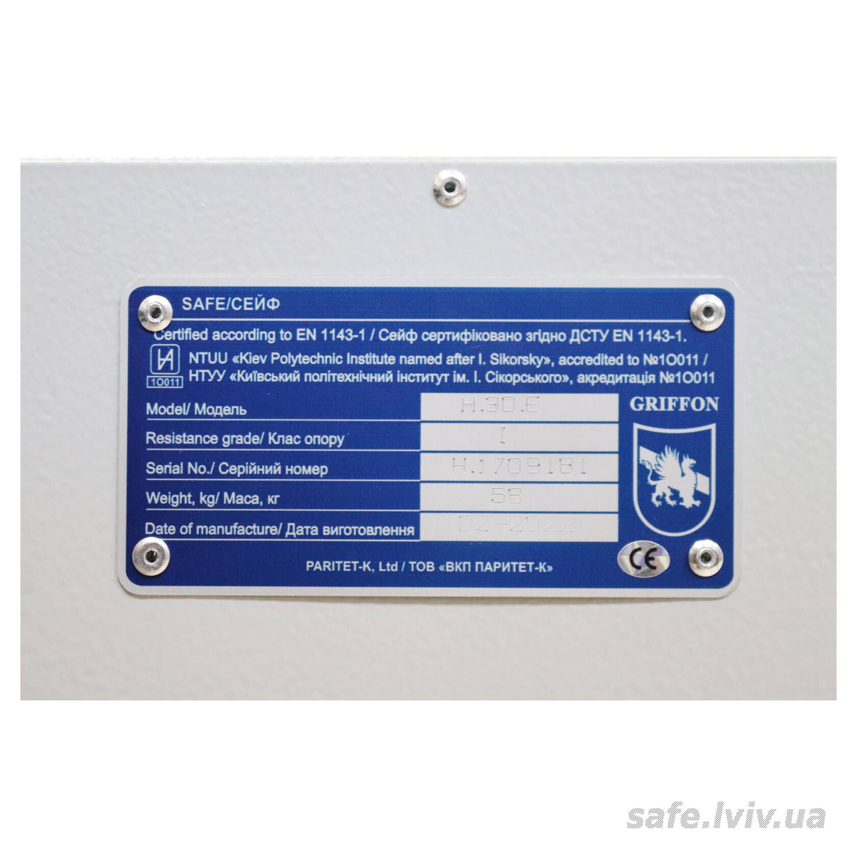 - Авторизований продавець: Сейфи Griffon Львів, вул. Генерала Курмановича, 2, Львів, Україна, 79040.