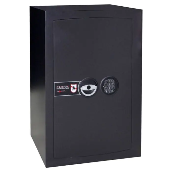Griffon H.65.E BLACK це сертифікований зламостійкий сейф клас I за EN 1143-1 та без вогнестійкості, призначений для зберігання грошей, документів, прикрас і цінностей у домі або офісі. Зламостійкість забезпечує конструкція корпусу 25 мм (сталь - зламостійкий бетон - сталь), дверей 14 мм (сталь), ригельна система тристороння, 4 ригелі Ø 25 мм та замок електронний M-LOCKS (Нідерланди) VdS Class 2 (B). Рекомендовані ліміти зберігання - до 2000 мінімальних зарплат для особистого користування та до 1000 для комерційного.